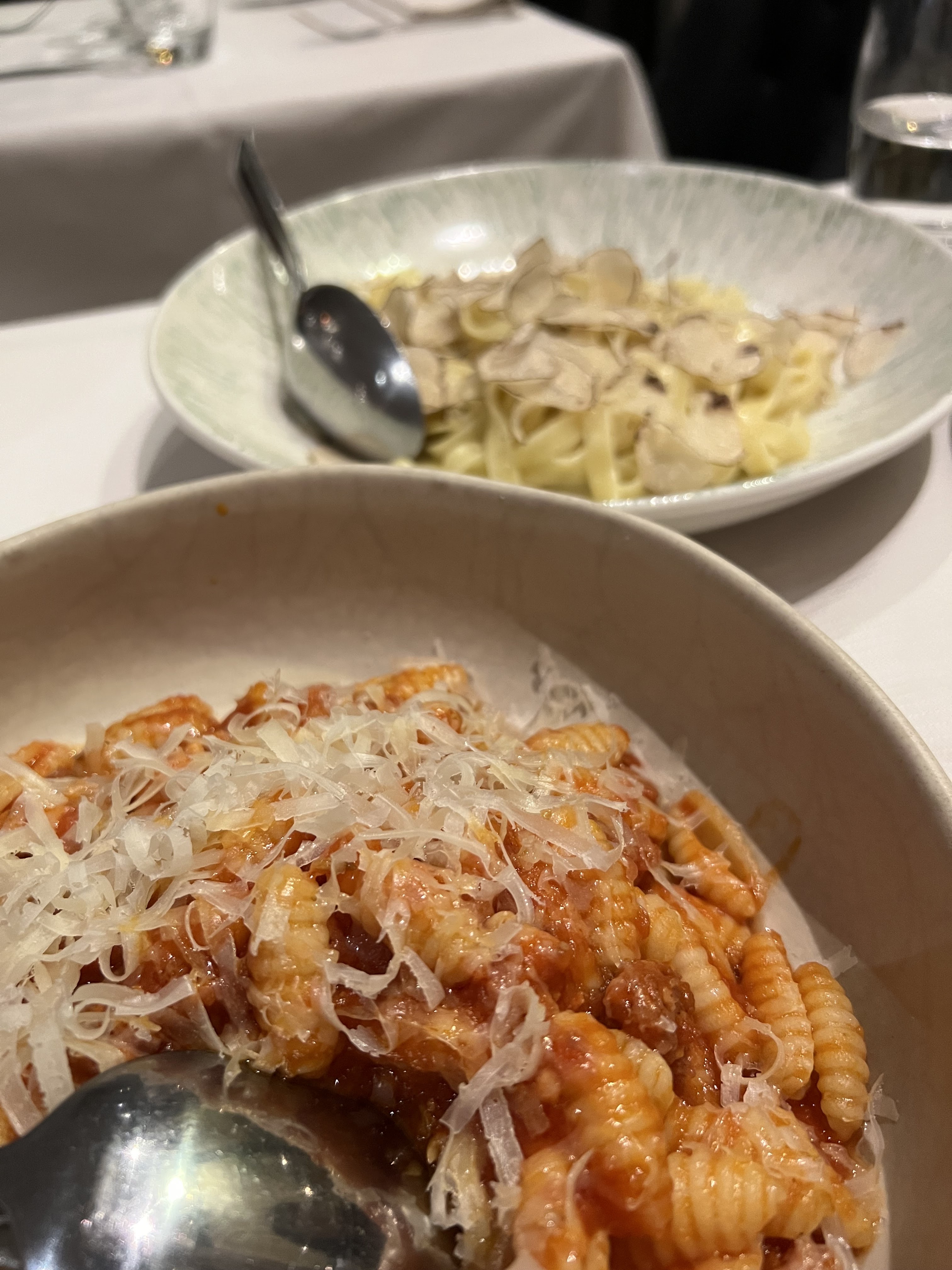 Les pâtes aux truffes ici sont phénoménales. Très bon service. Je n'ai reçu qu'une étoile à cause du prix (un peu élevé), mais c'est compréhensible étant donné le quartier aussi.