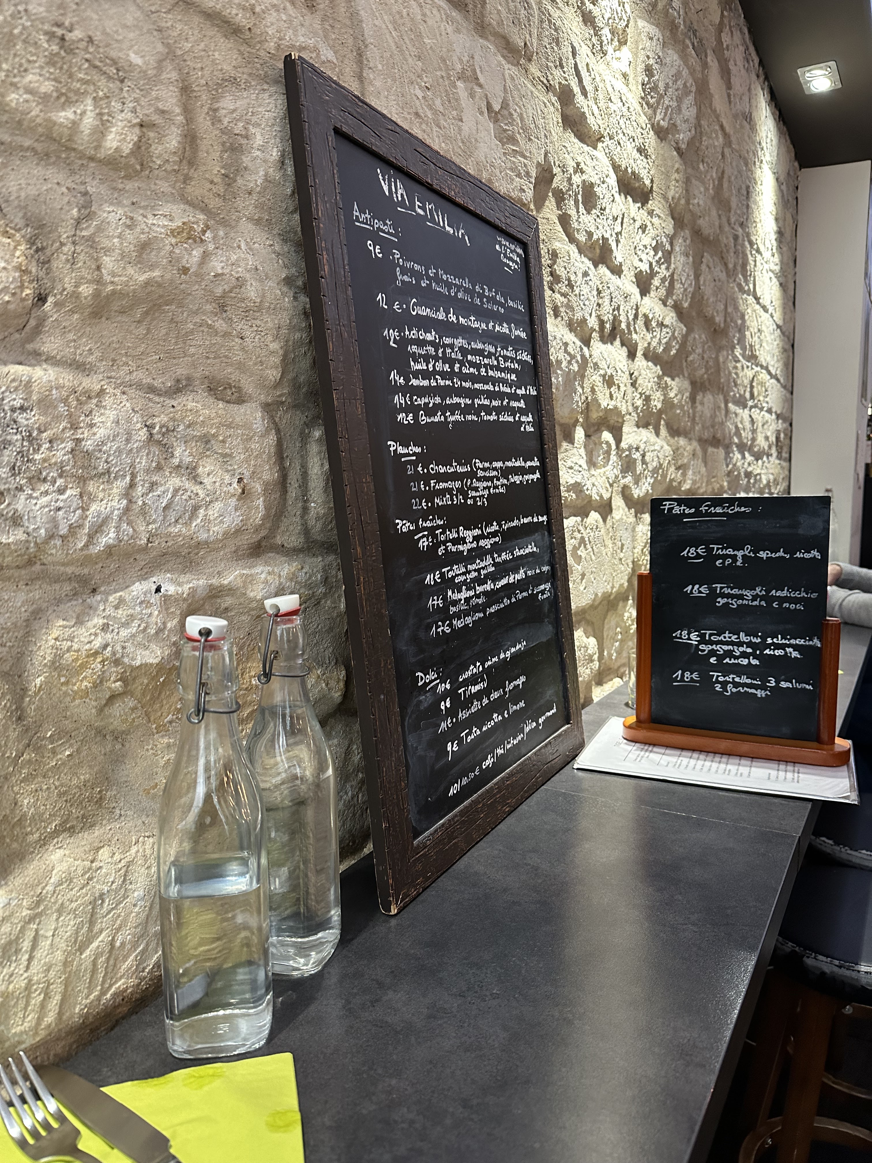 Un lieu parfait en tous points. Découvert grâce à Emmanuelle Jarry (C meilleur quand c'est bon) que nous suivons depuis les 1ers jours, et comme toujours nous sommes séduits par ses découvertes. L'accueil d'Eric est tellement plaisant qu'on resterait des heures, à échanger et découvrir tous les plats proposés. Les produits sont de haute qualité, la finesse est au rendez vous, des anti pasti aux desserts. Chaque plat est délicatement assaisoné, tout en laissant la place au produit ; nous avons adoré le beurre de sauge. Nous avons arrosé cette dégustation du vin renosu, que nous ne connaissions pas et qui nous a séduits. Bravo et merci à l'équipe de Via Emilia pour ce beau moment !