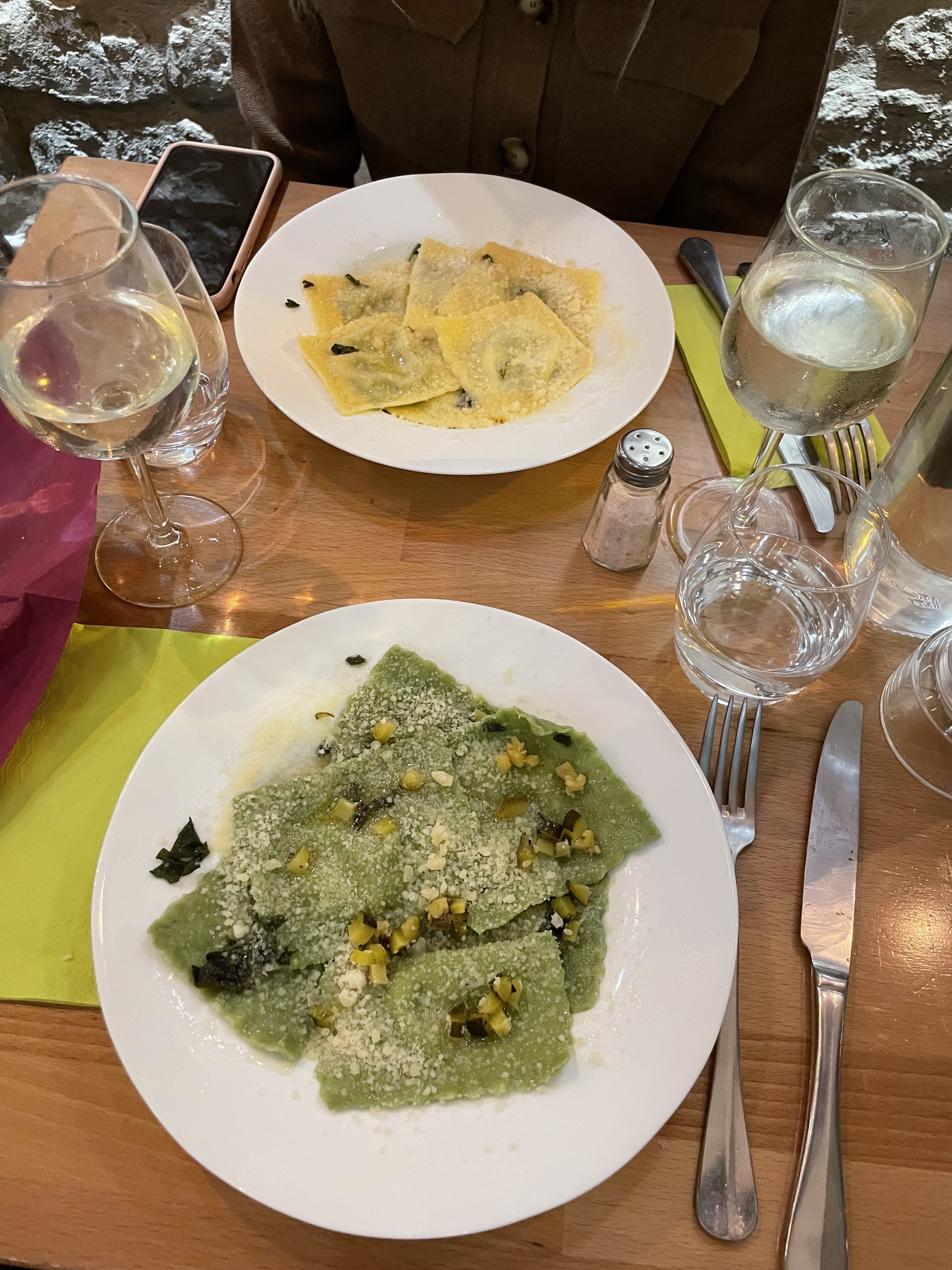 Il faut vraiment réserver si on mange sur place les deux salles sont pas très grandes. La charcuterie est très bonne,les raviolis sont faits maison et avec des goûts originaux. Les propriétaires très gentils. Je suggère, si ils ont envie, d'avoir aussi un menu sur QR code :-) belle expérience gustative. PS vous ajouteriez l'option bis avec des plats de raviolis plus grands pour quelques euros en plus?