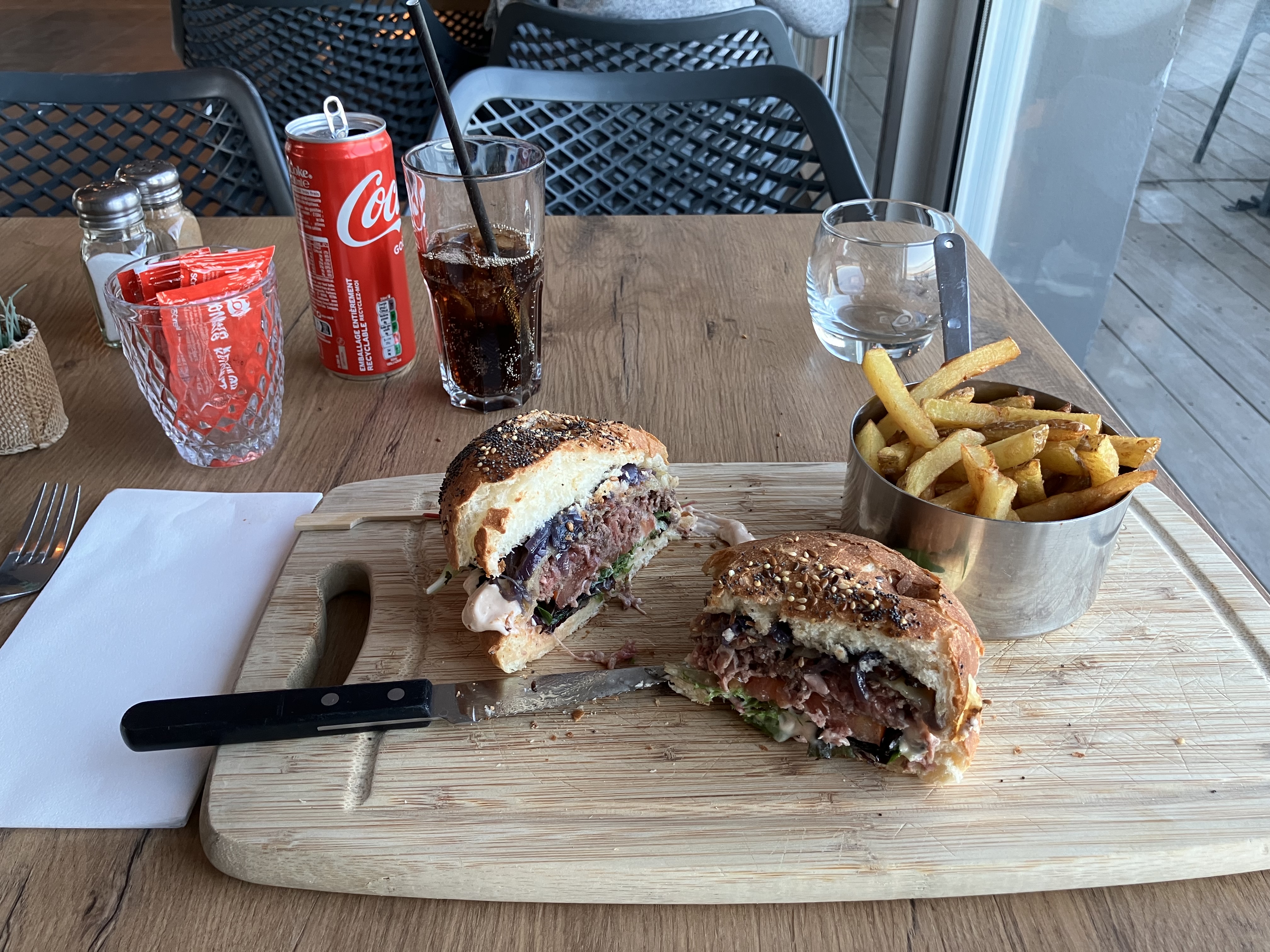 burger corse Excellent, avec des frites maison. Deux feuilles de salade serait un plus. Cheesecake aux fruits frais excellent. Vue exceptionnelle !! Service rapide et efficace.