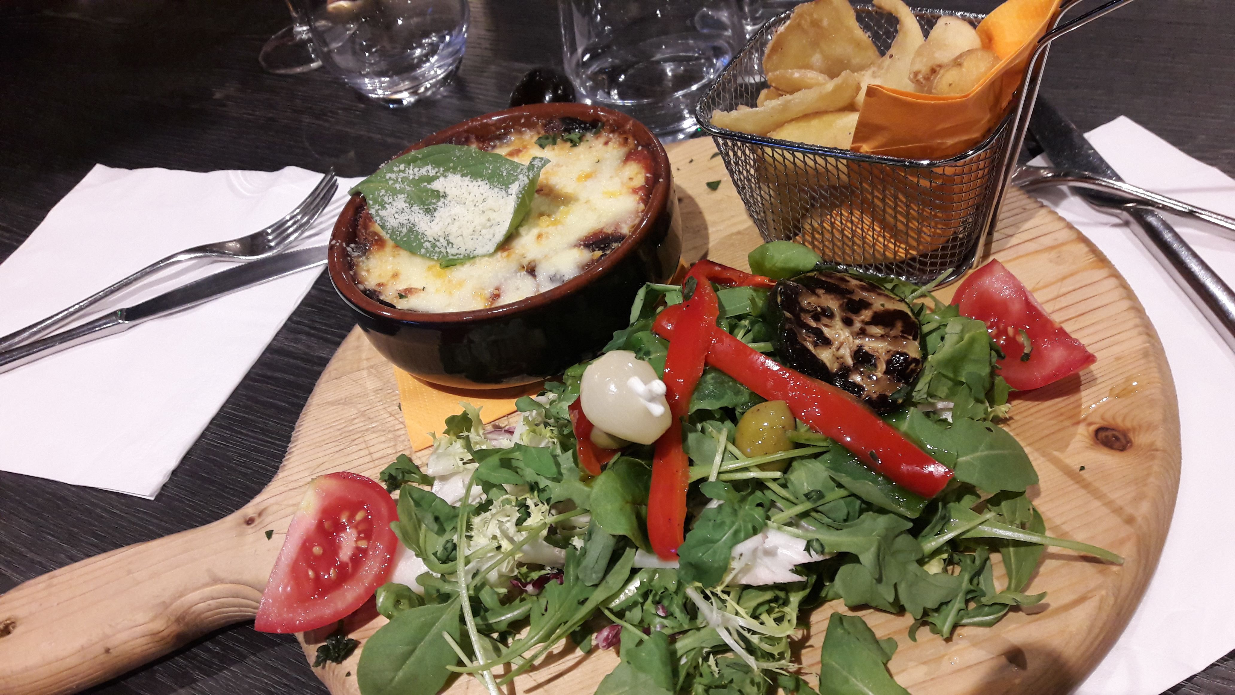 je recommande : super restaurant, bon accueil et salle très sympathique avec parfois ambiance musicale. en Photo la parmigiana. hummm