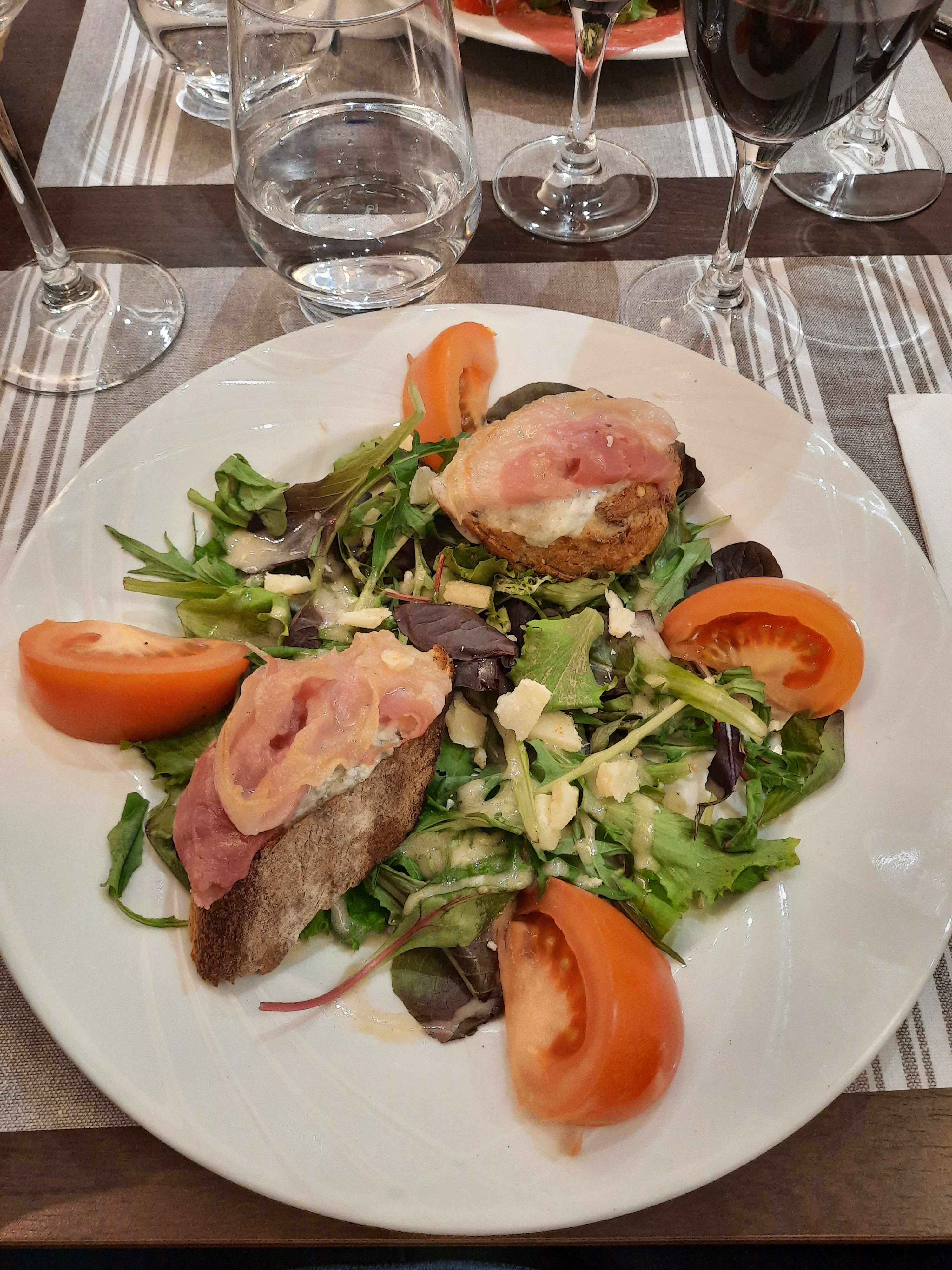 Après avoir vu que tout était complet, nous nous sommes arrêtés dans ce restaurant et très bonne surprise Apéritif maison délicieux, assiette antipasti très copieuse et pâtes Saint-Jacques également Je recommande