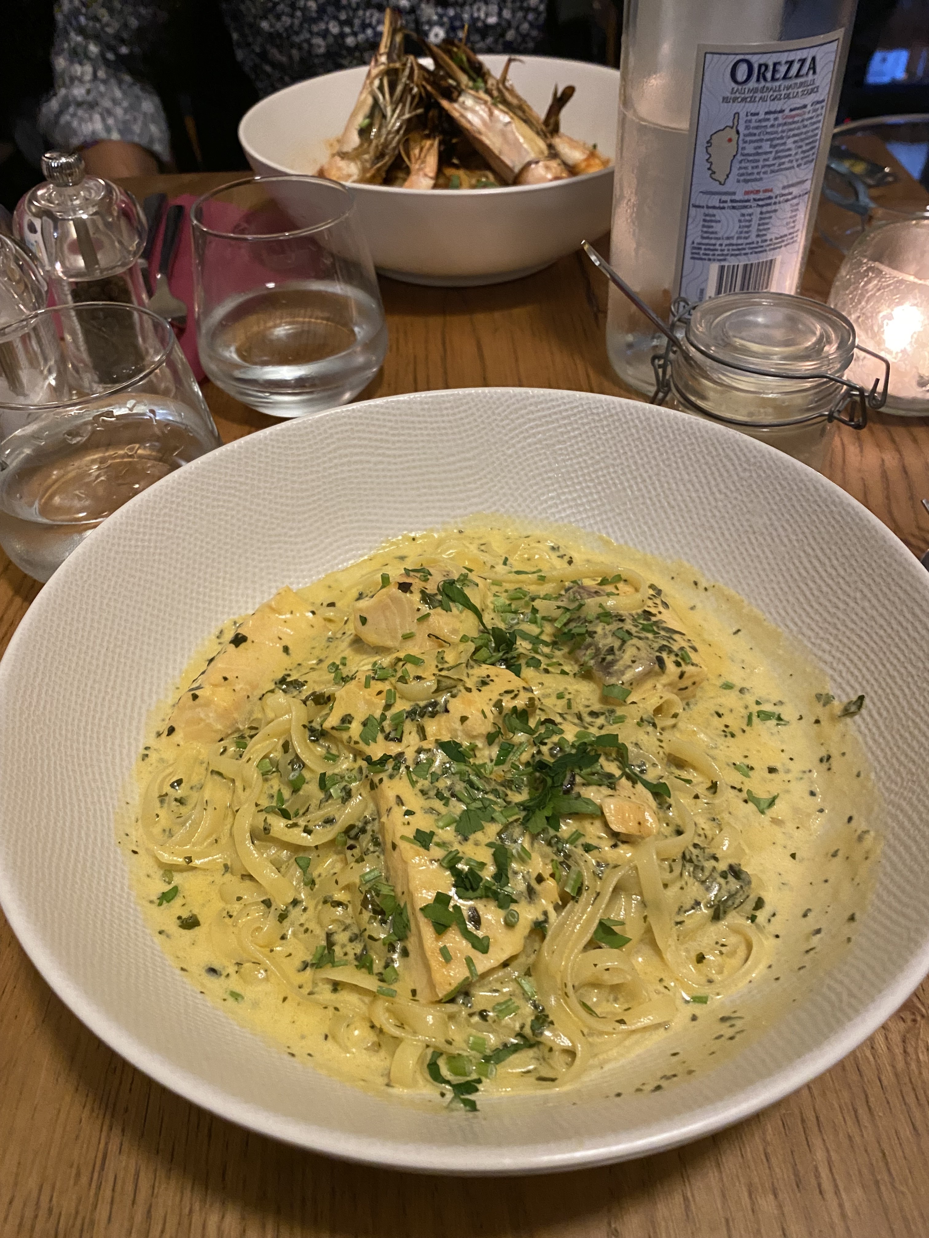 Nous avons pris le menu à 21 euros. Les plats étaient très bons mais si vous êtes des mangeurs il n’y a pas assez. Nous avons complété par des pâtes carbonara (avec crème) qui étaient très bonnes.
