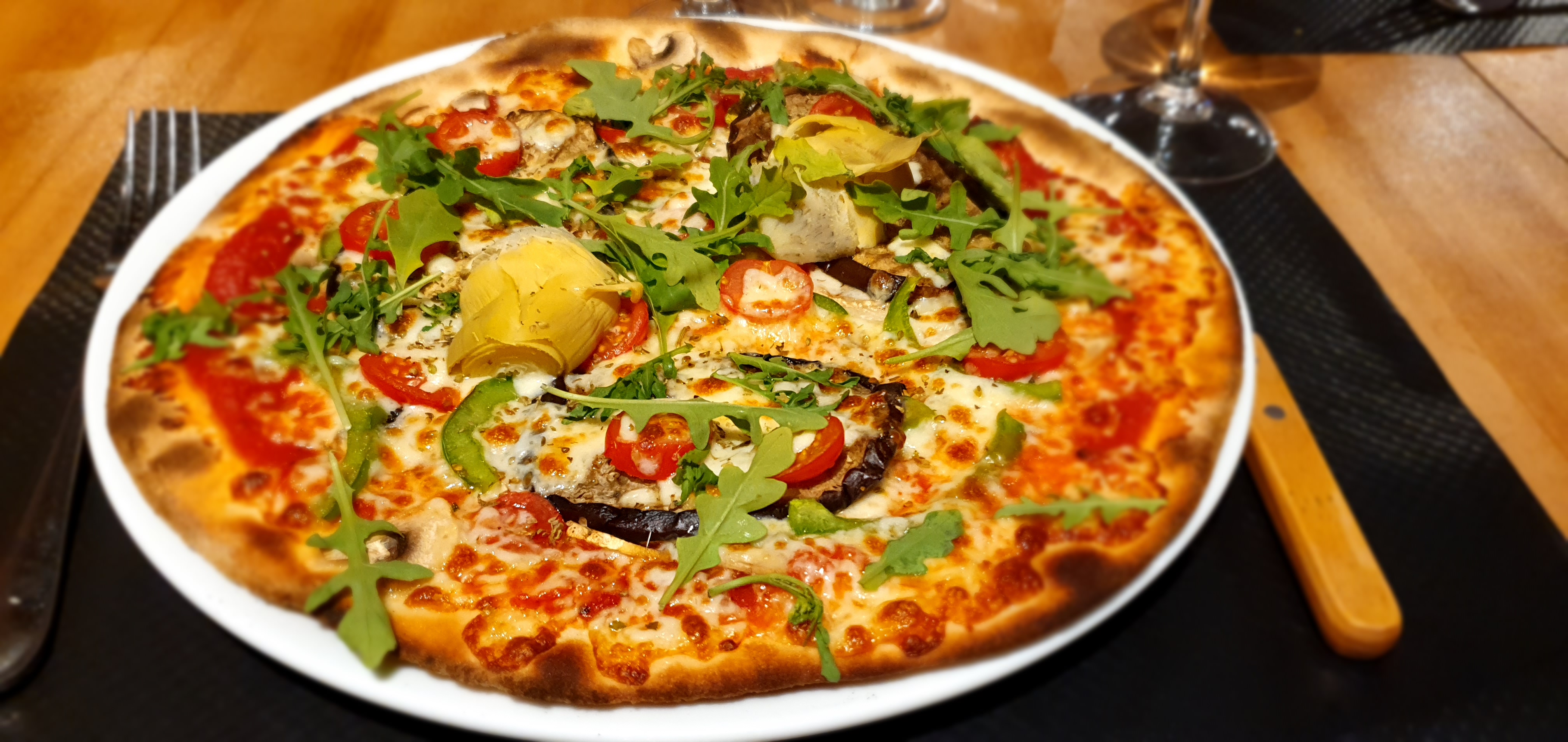 Pizzas faîtes sous nos yeux. Le saveurs étaient au rendez vous. Possibilité de manger végétarien ce qui est un plus. Personnel un peu survolant, aimable mais ça ma que d'esprit commerçant et sympathique. Bonne adresse 😉