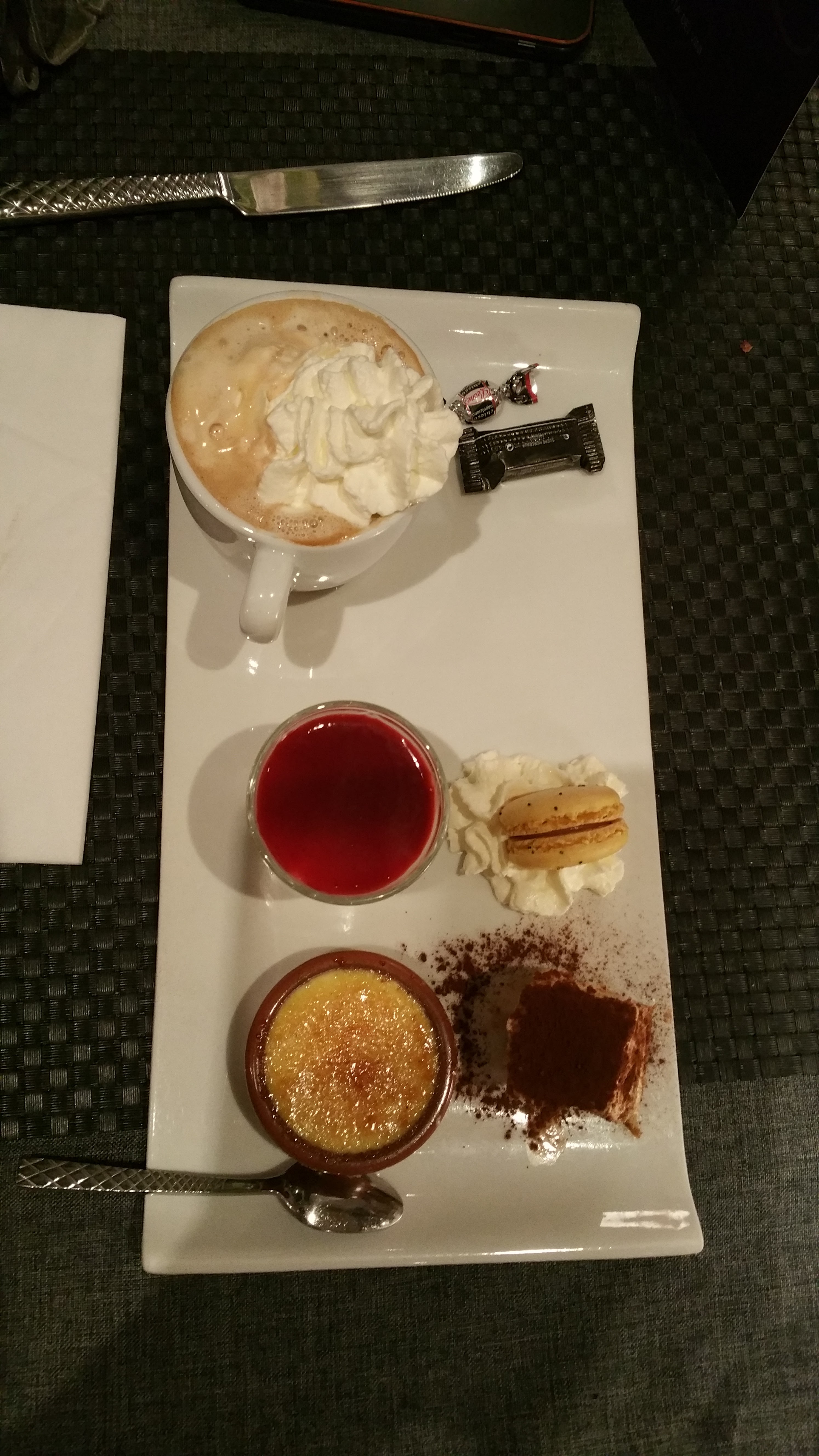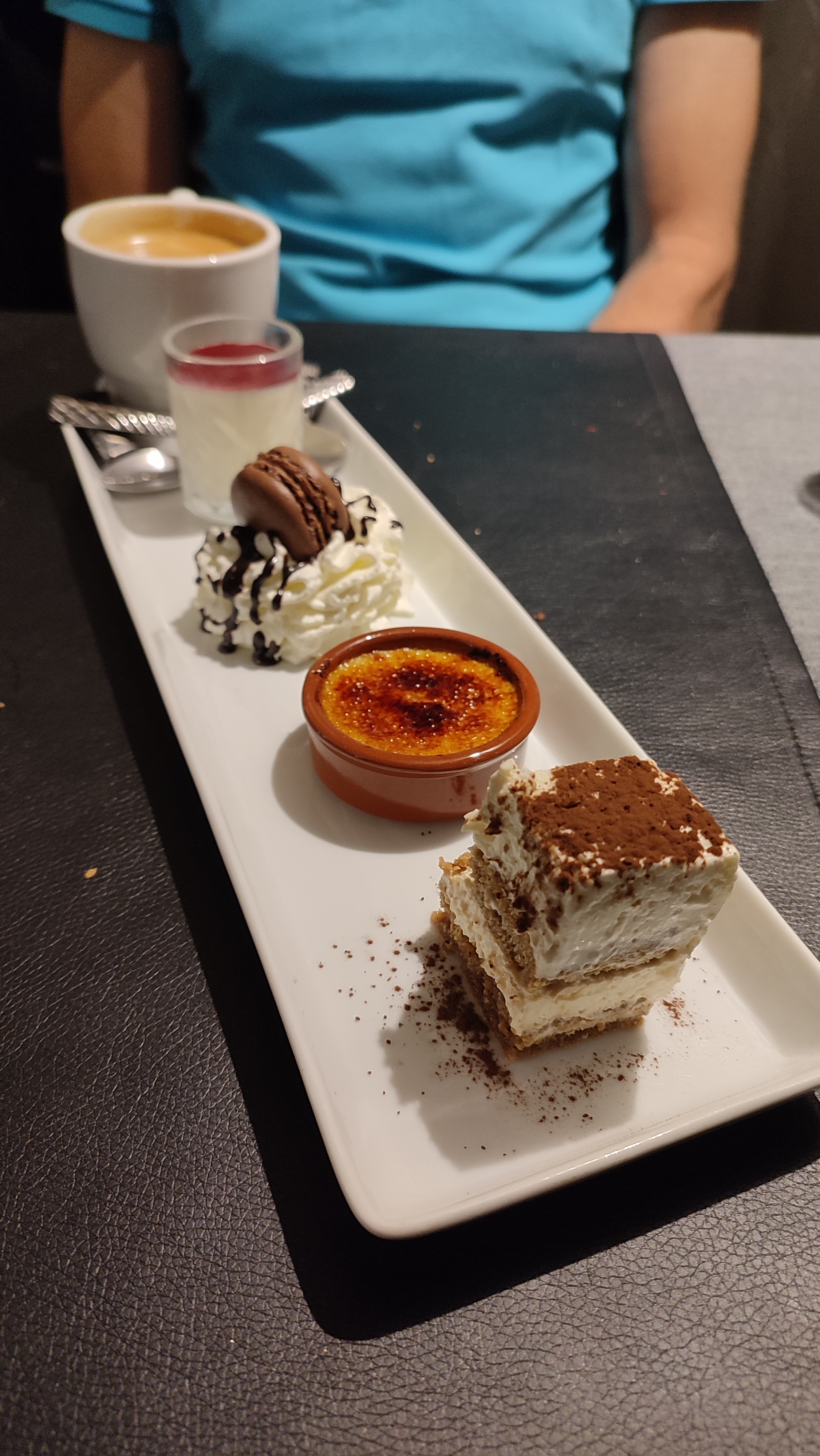 Accueil souriant. Ambiance conviviale dans un décor raffiné. J'ai été très satisfait des goûts et de la présentation. Petit bémol pour la chantilly. La bombe métro se retrouve trop souvent dans les desserts de certains établissements. Ceci n'enlève pas la qualité du café gourmand. Un patron, une équipe proche des clients. Bravo ❤️