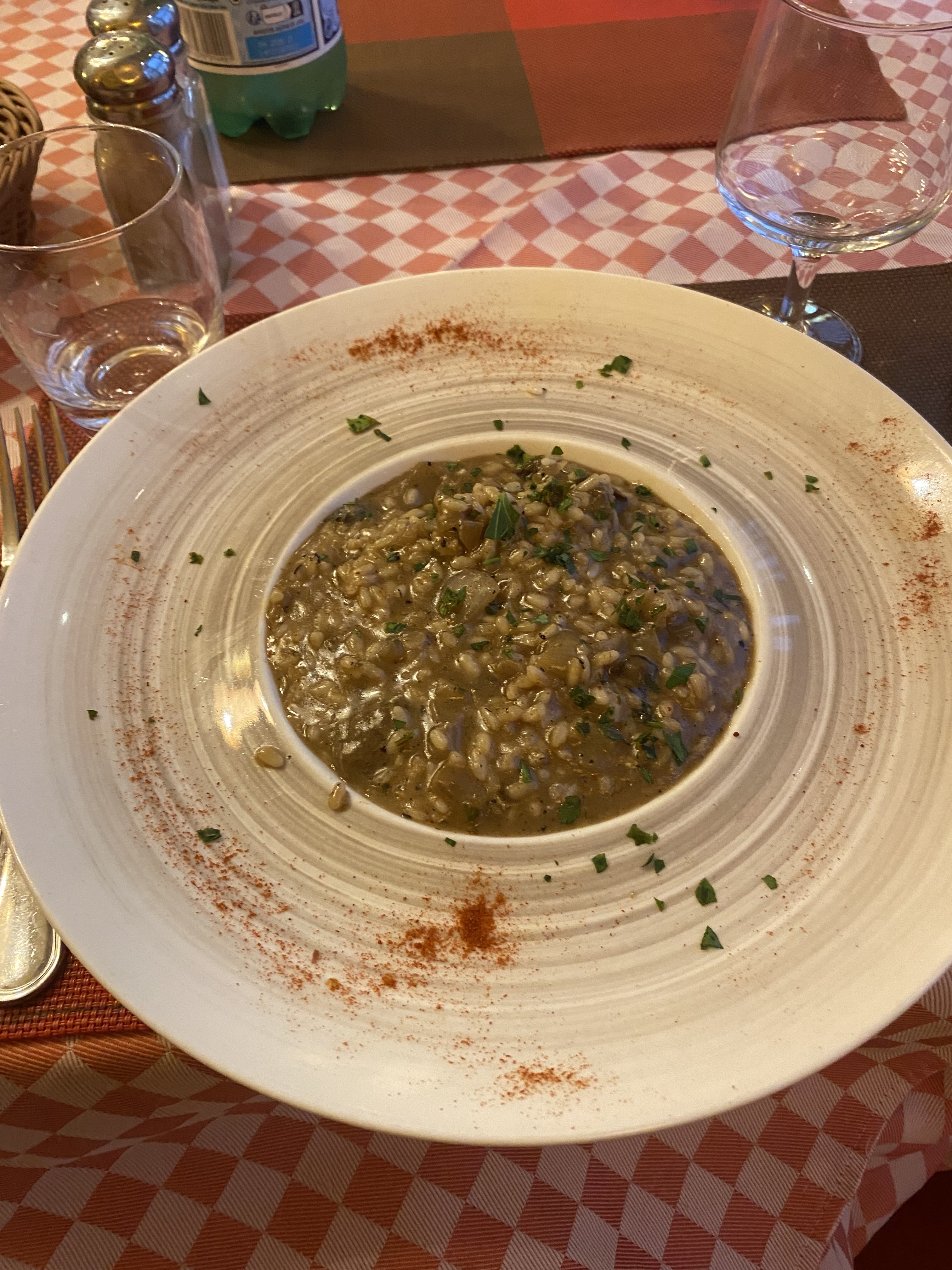 Montpelliérains d'origine italienne en vadrouille un samedi soir sur Aix... nous nous arrêtons devant ce restaurant chaleureux dans une petite rue sombre. Agréablement surpris par les Spritz qui nous sont servis, de grands verres très bien dosés ! (Les 10€ se vallaient) Due risotti commandés et due risotti littéralement dévorés !! Les desserts étaient également très bons ! Nous nous sommes laissés bercer par la langue italienne parlée ça et là par l'équipe du restaurant. Une soirée réussie dans ce petit restau typique au rapport qualité prix justifié 🤗