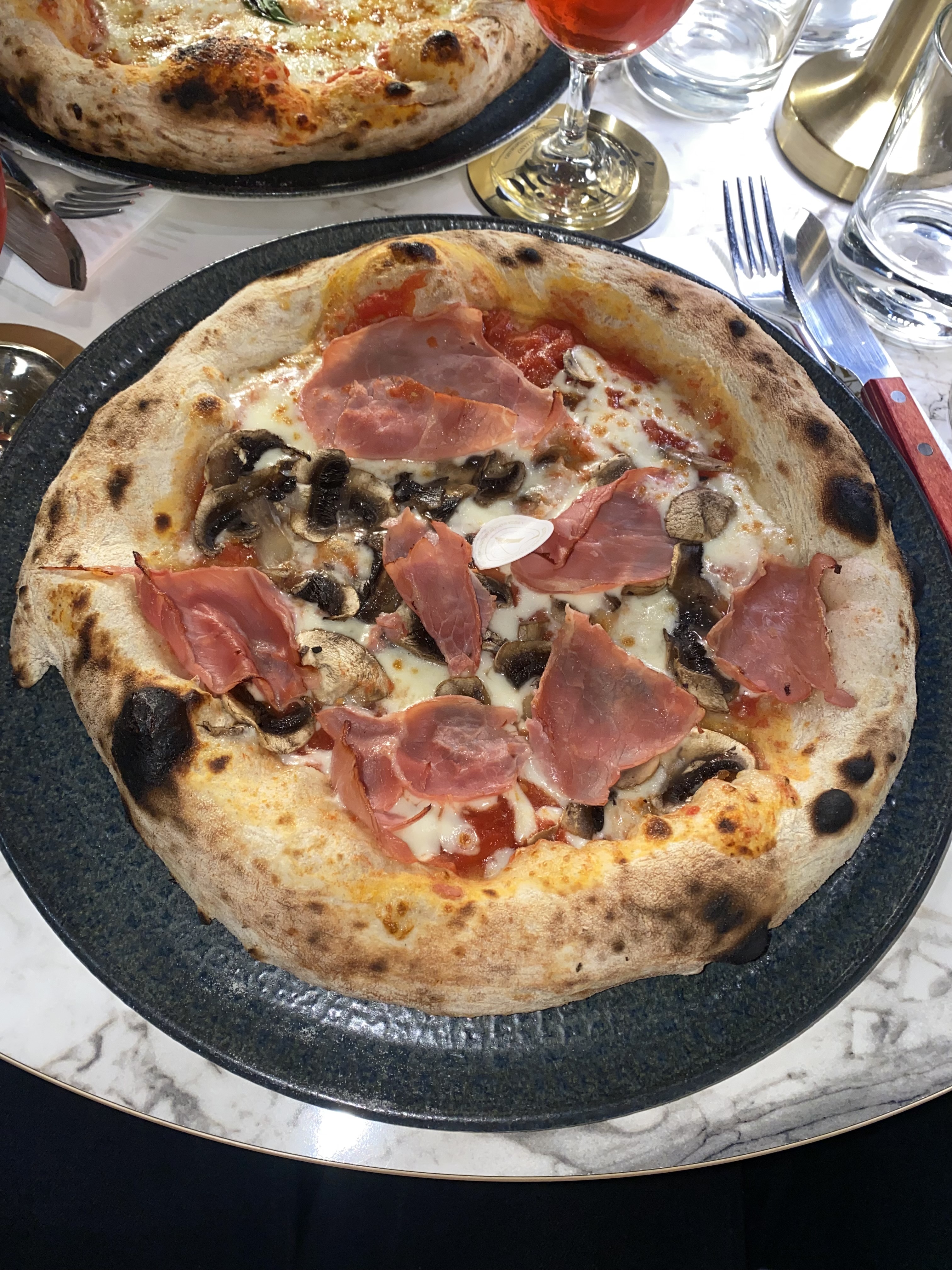 Une belle expérience, de très bonnes pizzas très copieuses par contre bémol sur des petits détails comme le fait que nous n’avons pas eu le temps de savourer nos cocktails que nos plats ont été si tôt servis , commercialement parlant ce n’est pas stratégique car du coup nous n’avons pas prit de vin. Plus de cocktails à base de Prosecco (très regrettable pour un restaurant italien), nous ne sommes pas prévenu à l’avance donc petite frustration lors de notre commande et pas de proposition du cocktail du jour que nous découvrons sur la story insta du restaurant en sortant …Pas de carafe d’eau proposée, il a fallu demander, le dessert était bon mais sans le plus: un baba au rhum avec une crème à la pistache (très léger en goût de pistache). Le cadre est très beau, le mobilier choisi avec goût et le service plutôt sympathique.