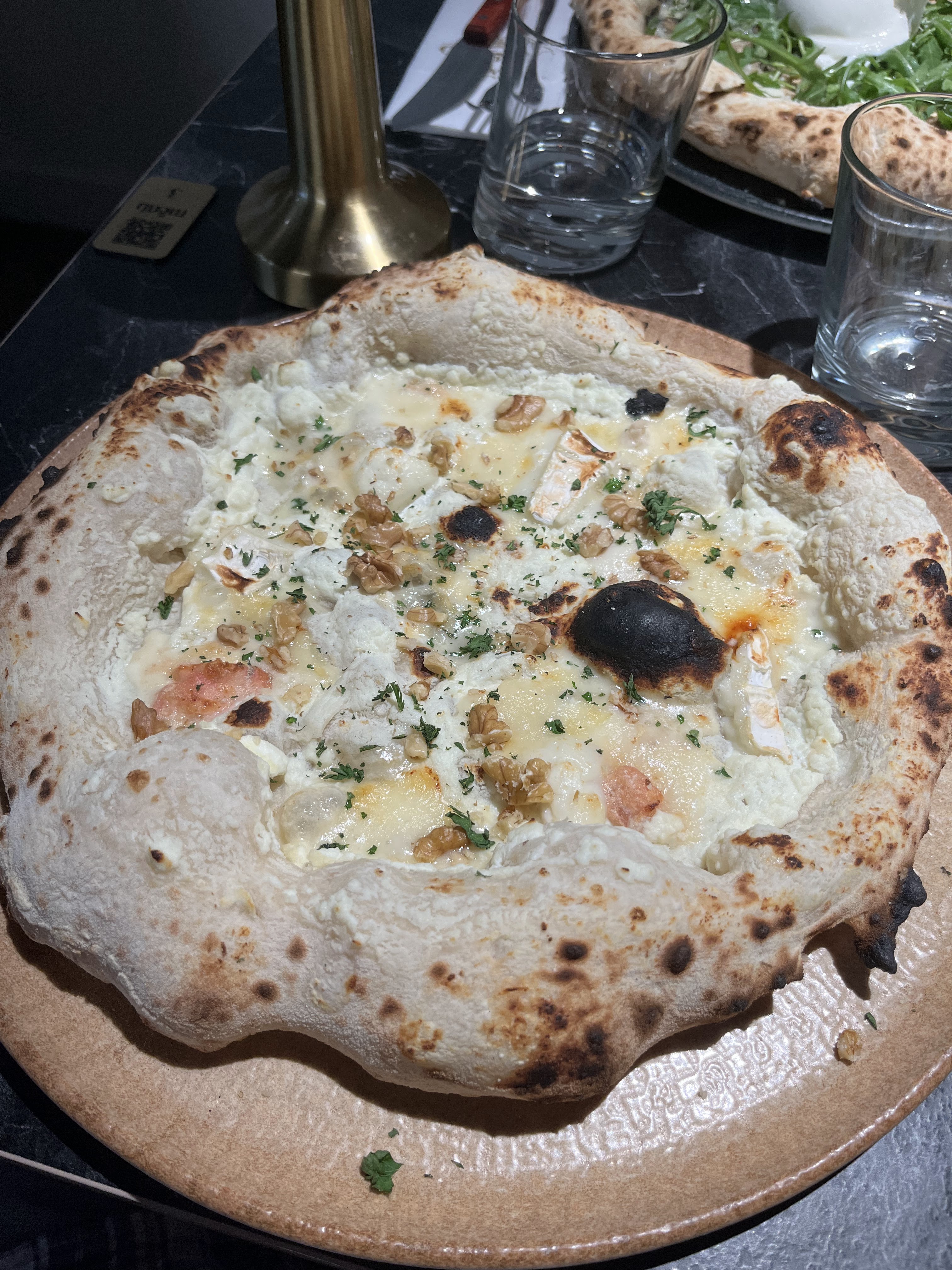 Pizza excellente, le vin et l'ambiance feutrée et chic également ! Je recommande absolument sans réserve 🥰