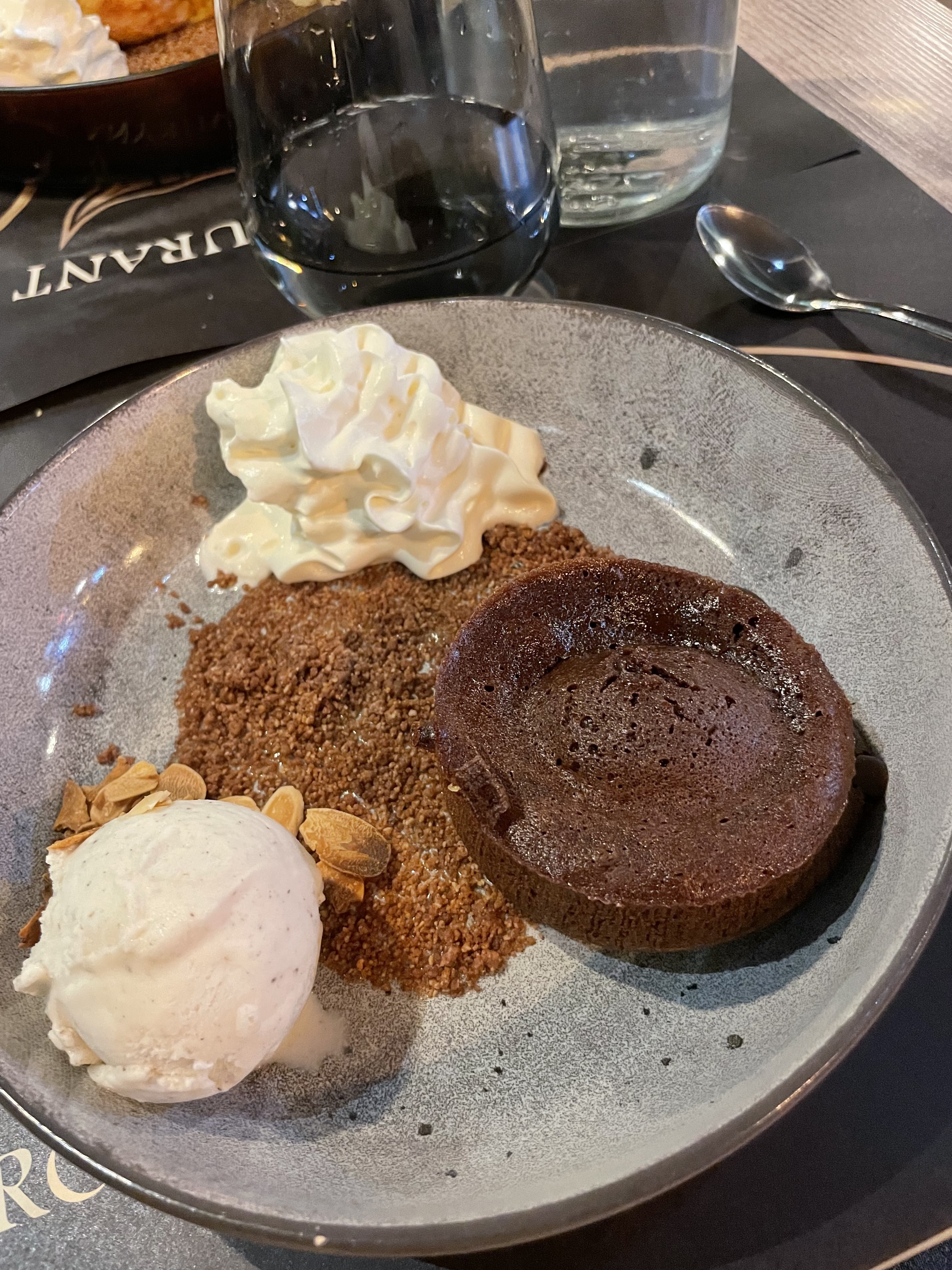 Accueil chaleureux, très satisfaite du repas et surtout fait maison,le coulant chocolat 👍on reviendra sans soucis. Merci