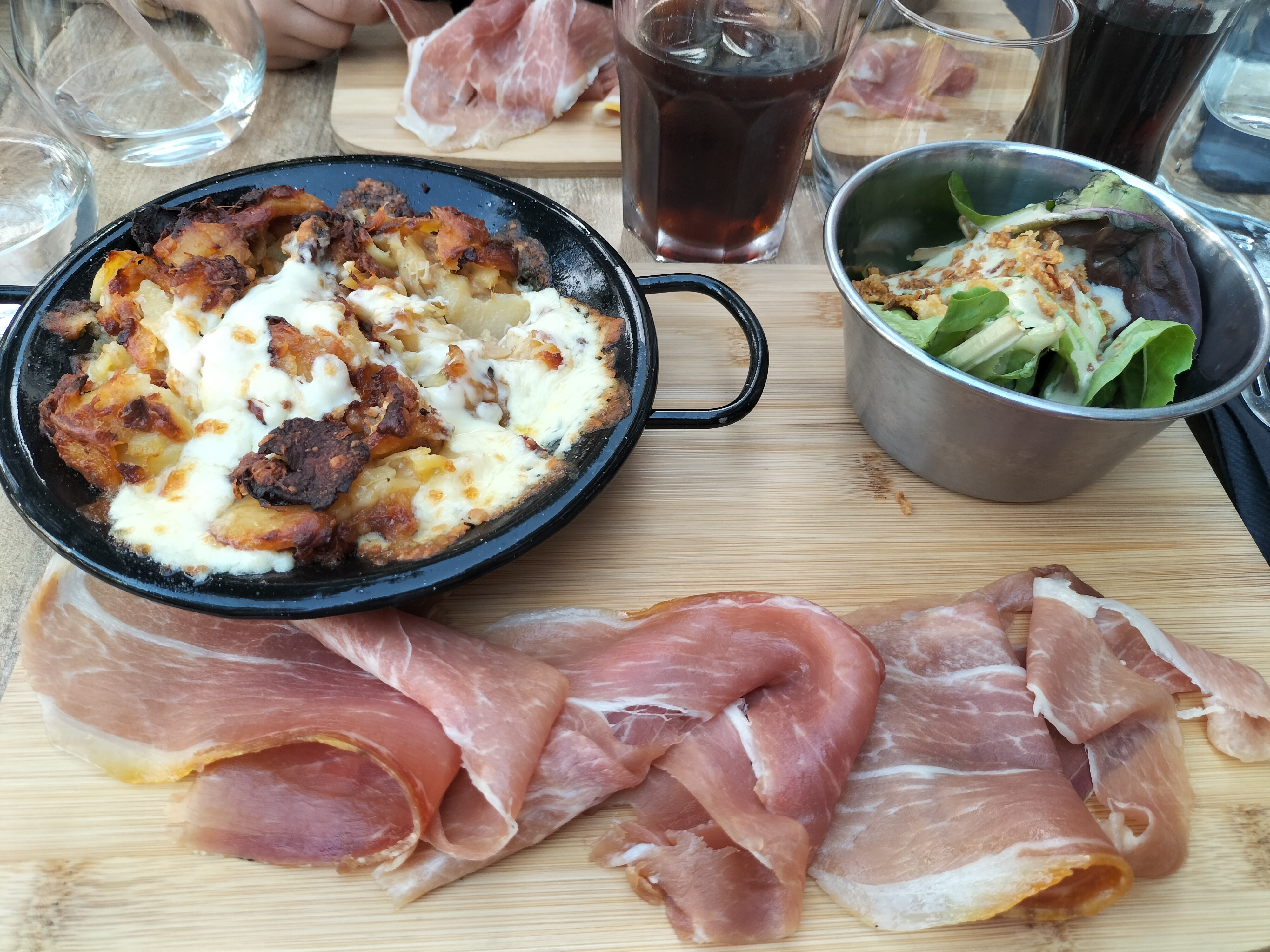 Déjeuner - un burger et une truffade - 24€ et 22€ - bacon très dur… oignons… bof … potatoes pas cuites … truffade sans saveur - jambon cru de basse qualité - salade accompagnant la truffade à la vinaigrette immangeable - le serveur a sourit à l’encaissement … hyper déçu… pourtant ça présentait bien Toilettes malodorantes… Bref je ne reviendrai pas !!