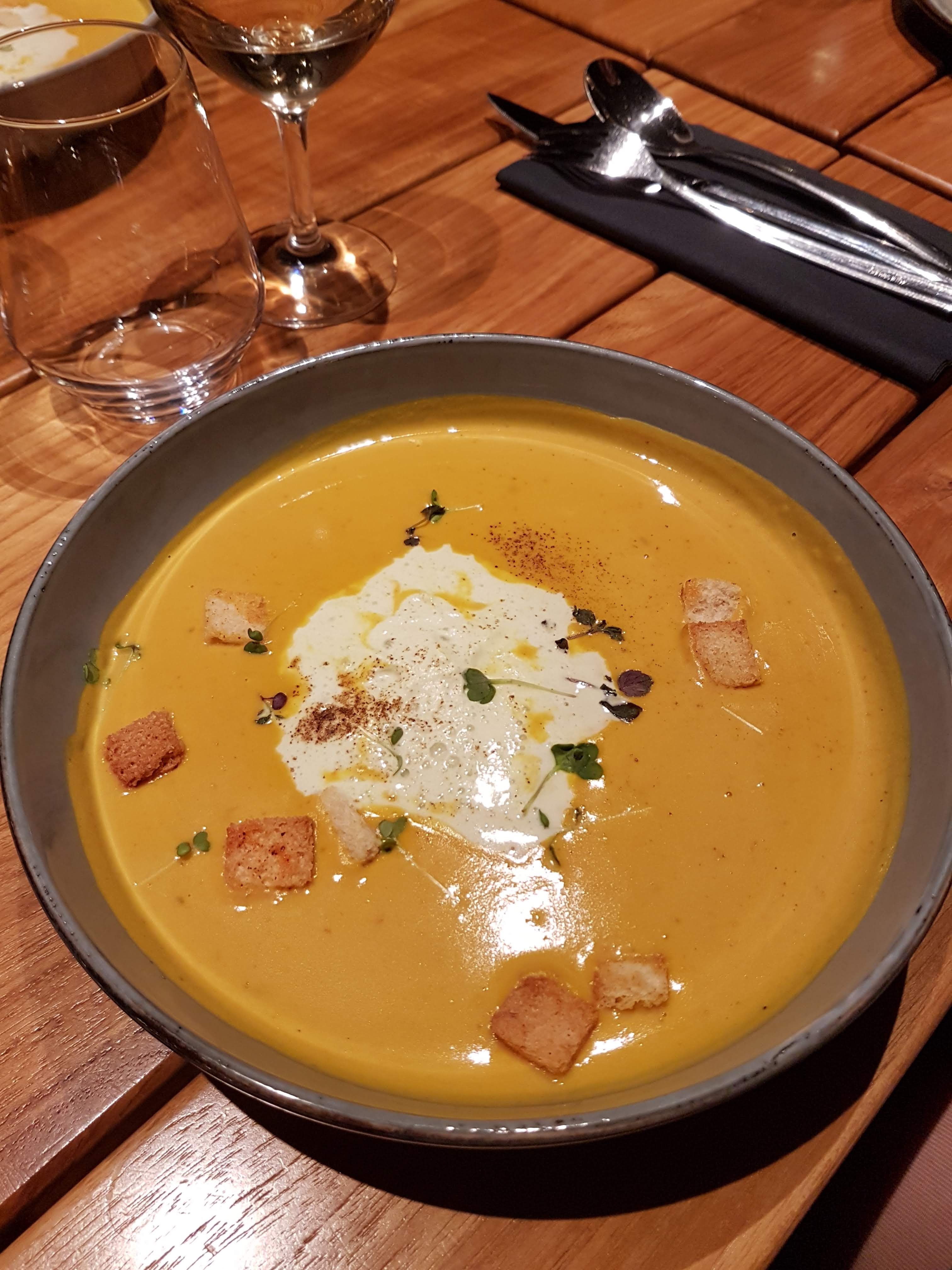 Joli endroit personnel agréable ; cependant le menu du jour me laisse perplexe : j’ai pris une bouillon thaï et à part 3 petites gambas qui baigner dans une marre d’eau épicée il n’y avait rien de plus ensuite le dessert laisse à désirer quant à la présentation du granola sur un lit de compote et recouvert d’une mousse chocolat ratée Heureusement le verre de vin blanc était bon Rien qui justifie le terme bistronimique mais plutôt astronomique J’ai fait mauvaise pioche mes voisins de table ont pris pomme de terre et charcuterie une valeur sûre