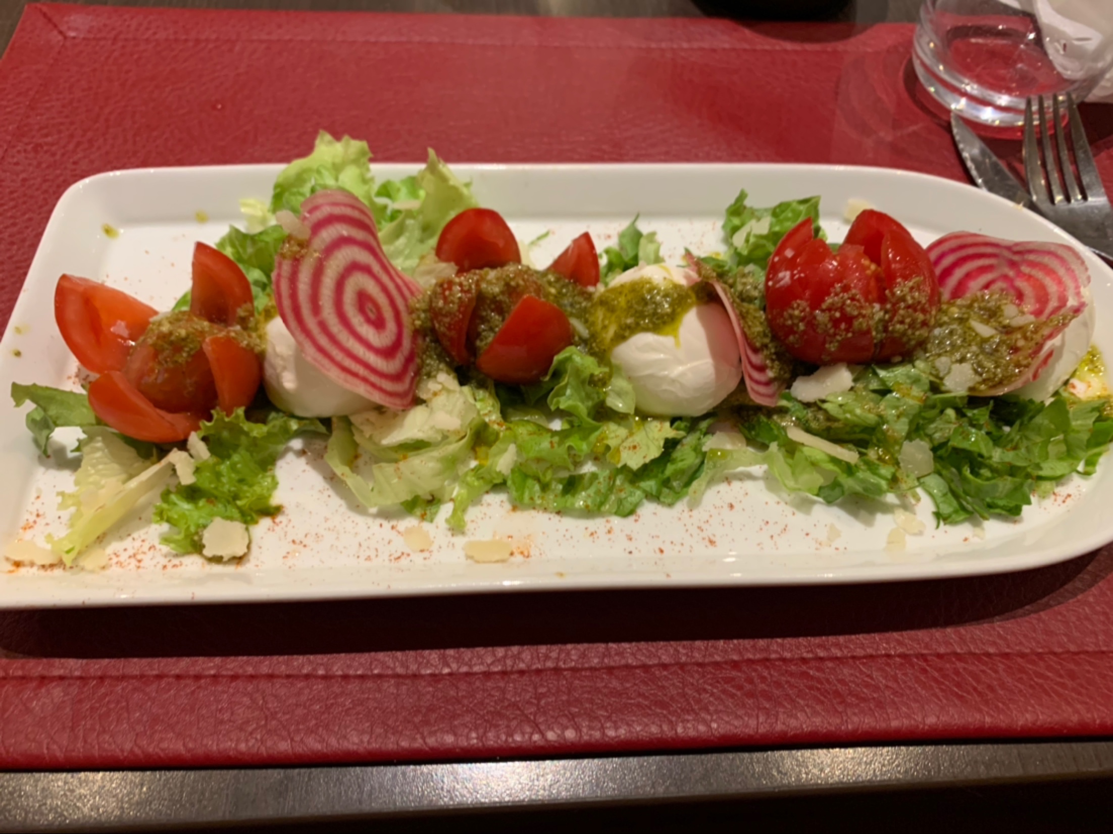 Bonne salade italienne, bien garnie et agréable Parfait pour un lundi midi en terrasse Dommage pour la corbeille de pain, 3 microscopiques bouts de baguettes industrielles