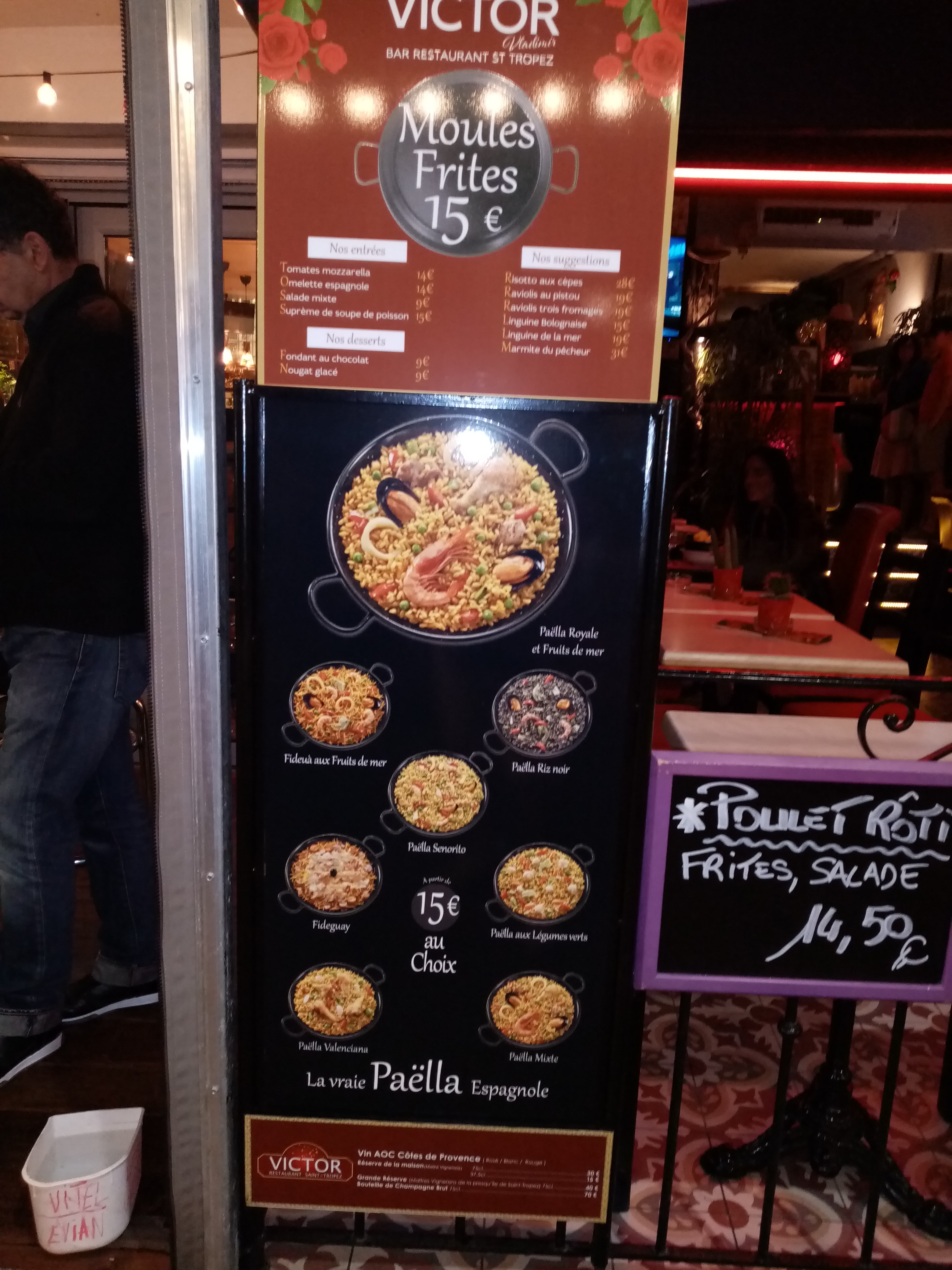 Malheureusement, nous avons lu les critiques trop tard. Donc, si vous voulez dépenser beaucoup d’argent pour peu de nourriture, cet endroit est fait pour vous. Le prix attractif de 15 euros ne s'applique qu'aux plats végétariens, sinon les paellas coûtent environ 26-28 euros. La paella mesure environ 1 cm d'épaisseur et le diamètre de la poêle est d'environ 20-22 cm. Quelques fruits de mer ou petits pilons de poulet ne suffisent même pas à rendre justice à une vraie paella. Le riz est très gras. Les boissons sont servies dans une canette. N'allez plus jamais chez Victor ! Les gars, pour ces prix-là, vous pouvez facilement aller dans les très bons restaurants du port et vous y serez vraiment rassasiés. Et si vous voulez manger une très bonne paella, procurez-vous-en au marché de Saint-Tropez.