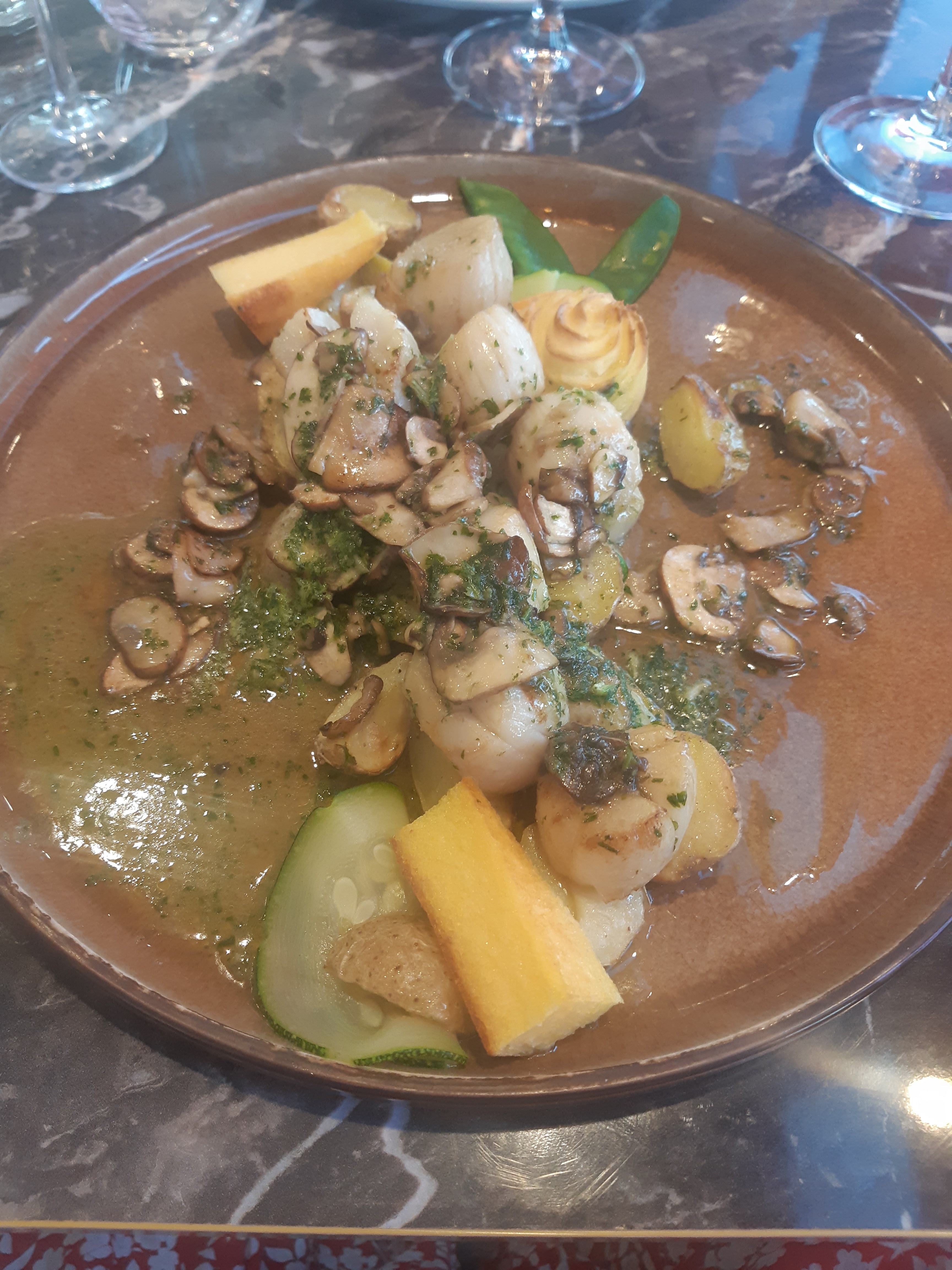 Service au top, cuisine excellente (plat de saint Jacques en quantité, fraîches et bien cuites, présentation soignée)