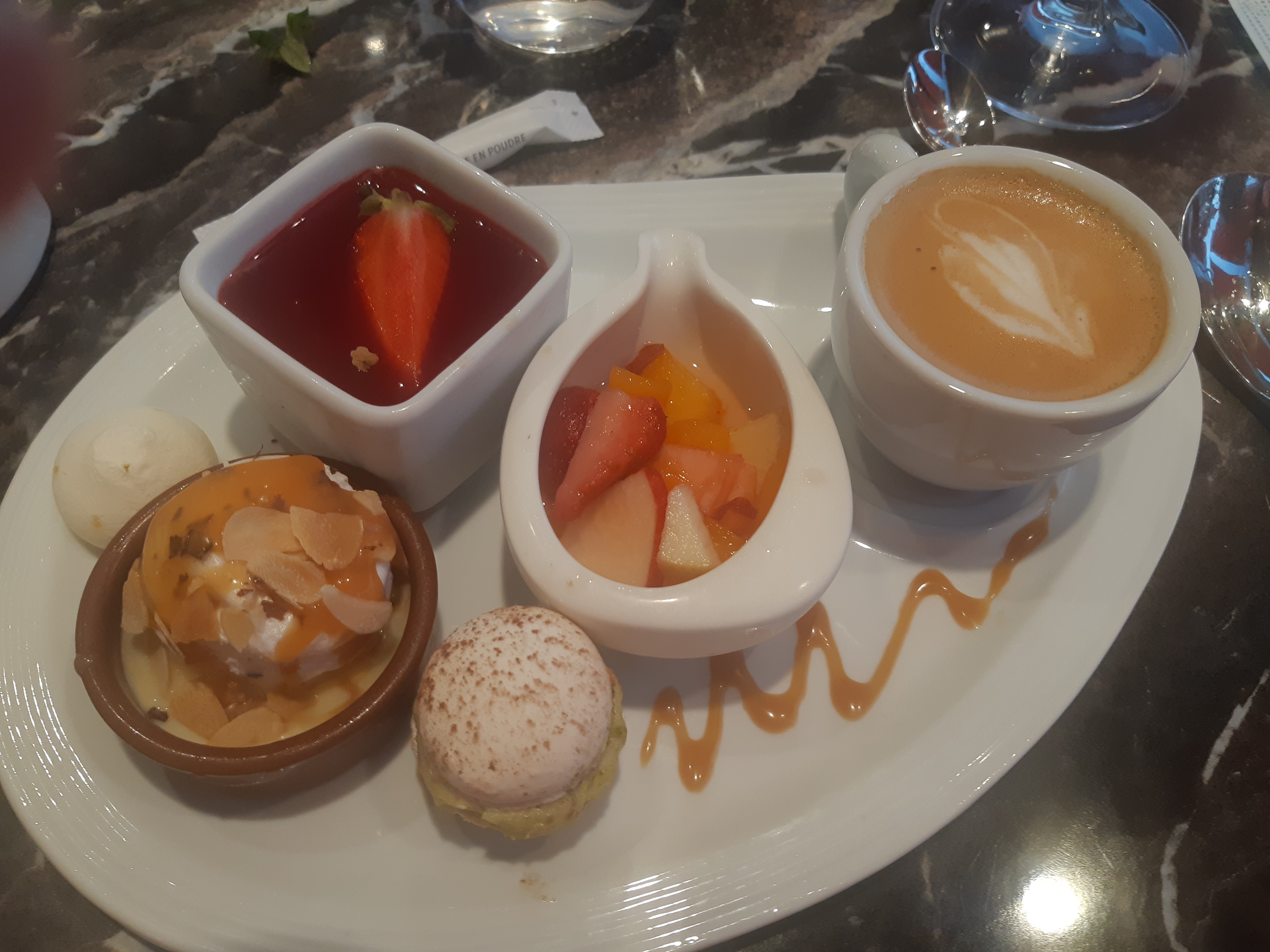 J'ai opté pour un plateau de fruits de mer qui s'est avéré être pas mauvais du tout. Les fruits de mer étaient frais et bien préparés, offrant une dégustation agréable. Cependant, mon ami qui a choisi un plat de viande il a été très déçu de son expérience. La viande était peut-être mal préparée ou pas à la hauteur de ses attentes.Le dessert n'a pas non plus été à la hauteur des espérances.