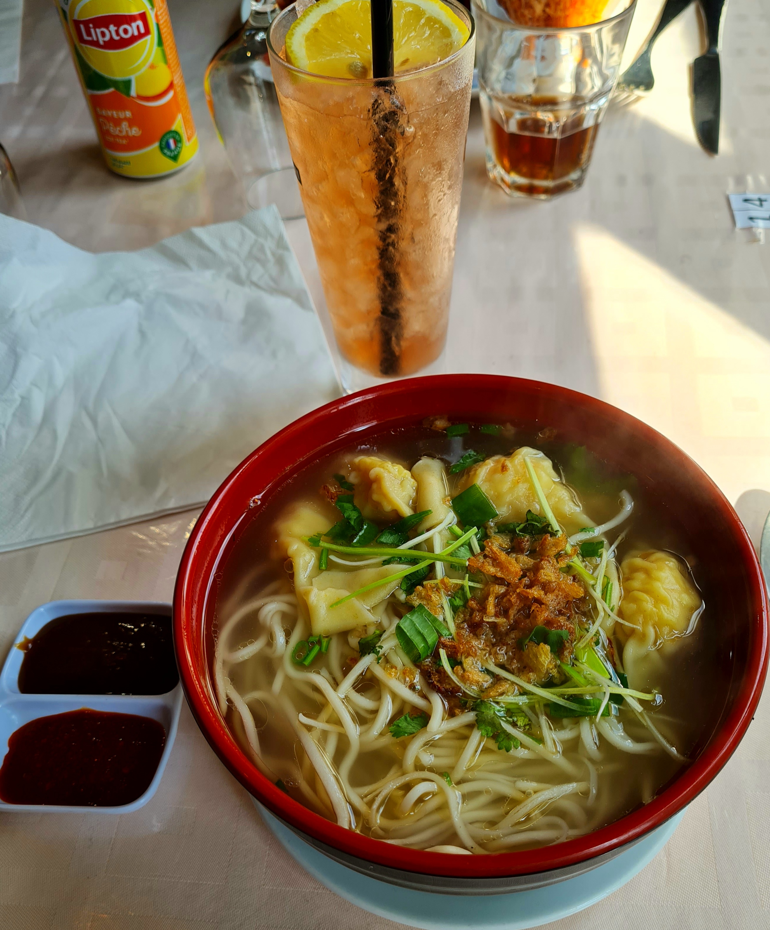 Les plats sont frais et savoureux. Un gros coup de cœur pour la soupe pho ++ et le thé au citron ! Sans compter l’accueil des plus agréables… Pour résumer : EXCELLENT restaurant où nous avons hâte de retourner !