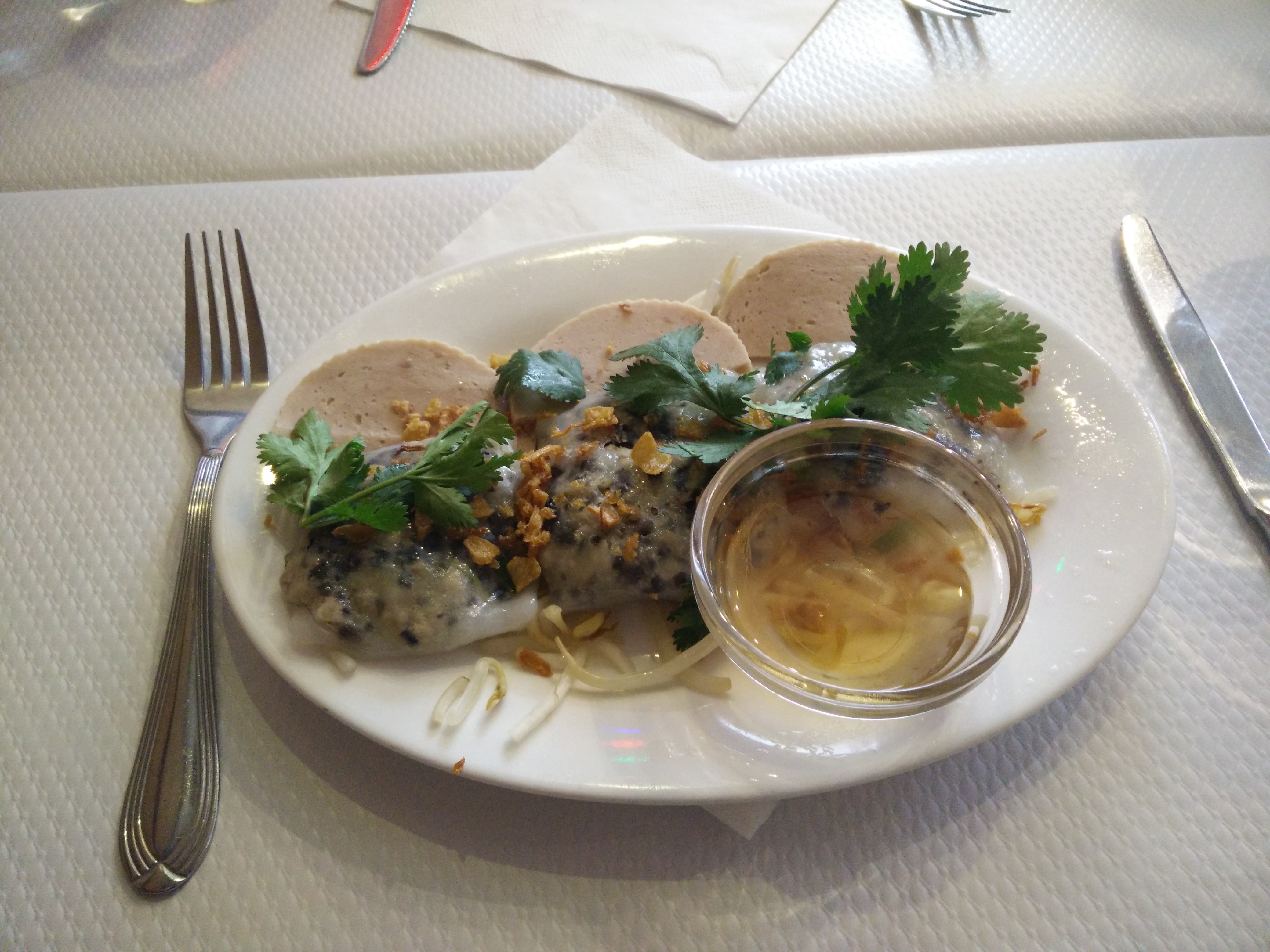 La nourriture était vraiment super ! Mon préféré était le banh cuon ! Il est assez rare de trouver ce plat dans un restaurant d'où je viens ; J'étais ravi de le voir au menu et je n'ai vraiment pas été déçu, un bon repas ! Je reviendrai certainement !