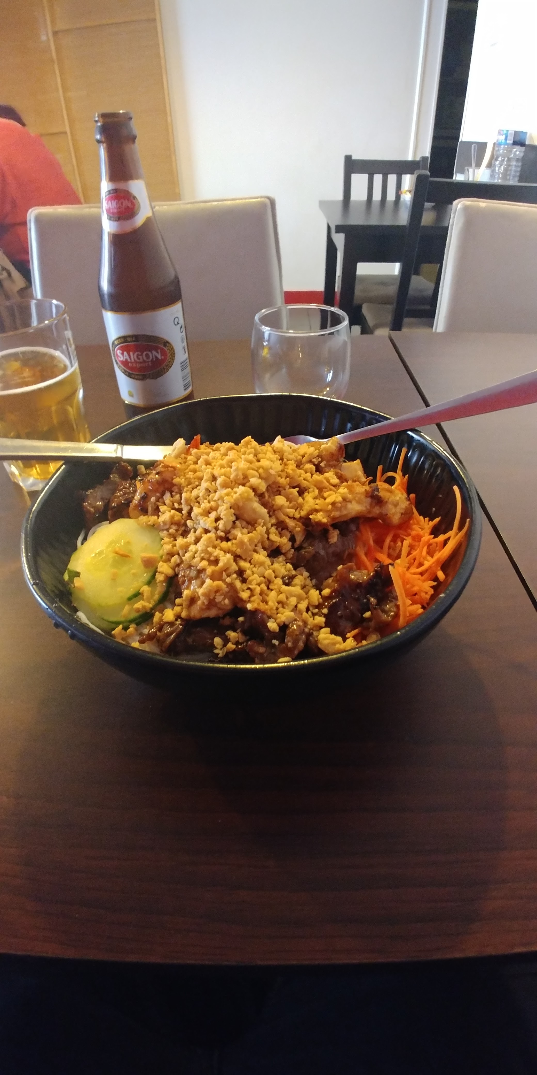 Pas cher, servi rapidement et très bon. La carte tourne principalement autour des salades viet' toute indiquée sans gluten, et il y en a même une végétarienne.