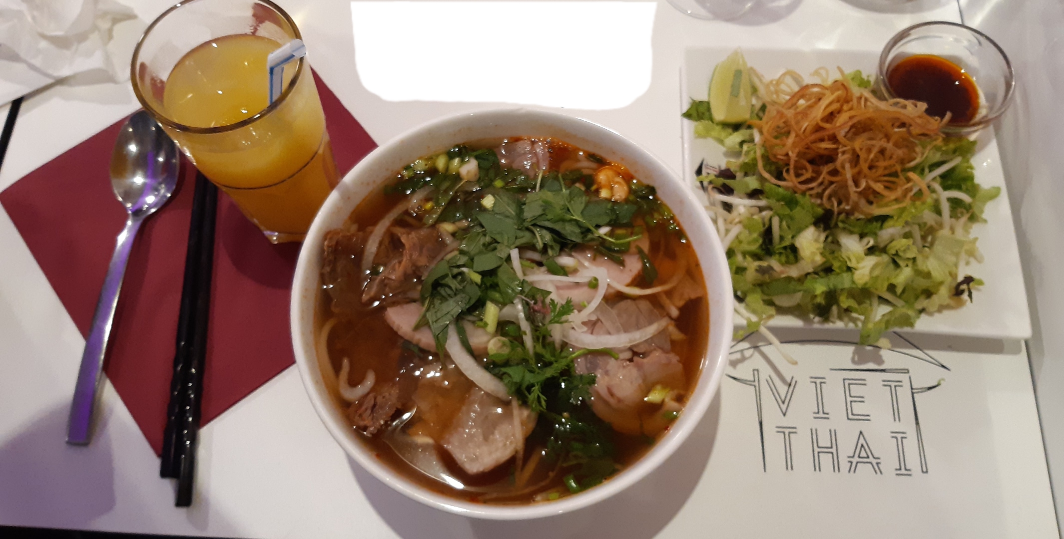 Un bon choix pour les plats vietnamiens typiques (Bun bo Huê, soupe de riz,..). Les plats sont bien servis, un peu trop même pour quelqu'un qui mange beaucoup. Le service est conforme, rien à signaler. Par contre, personnellement, j'aime pas les plats thaï d'ici.