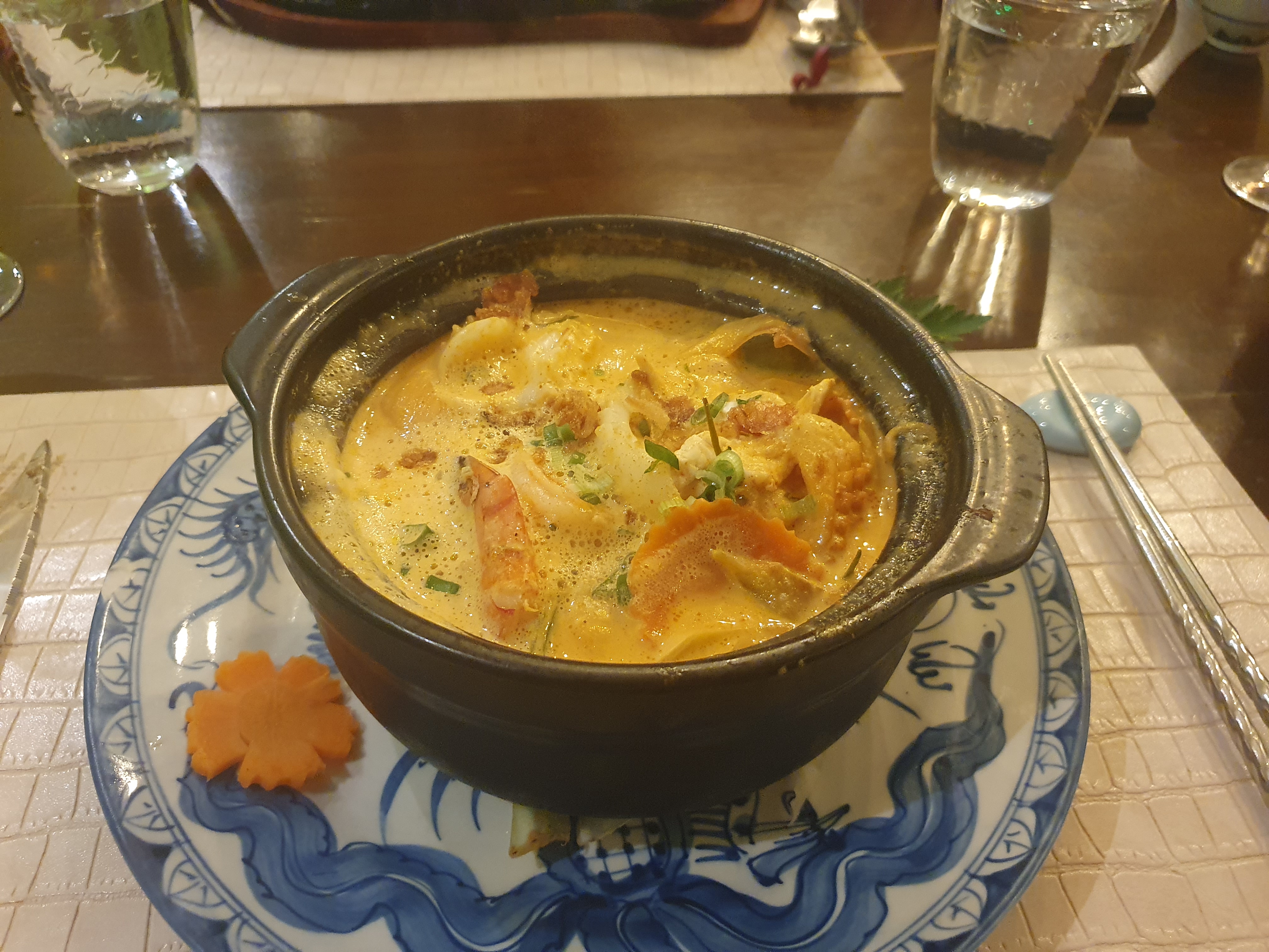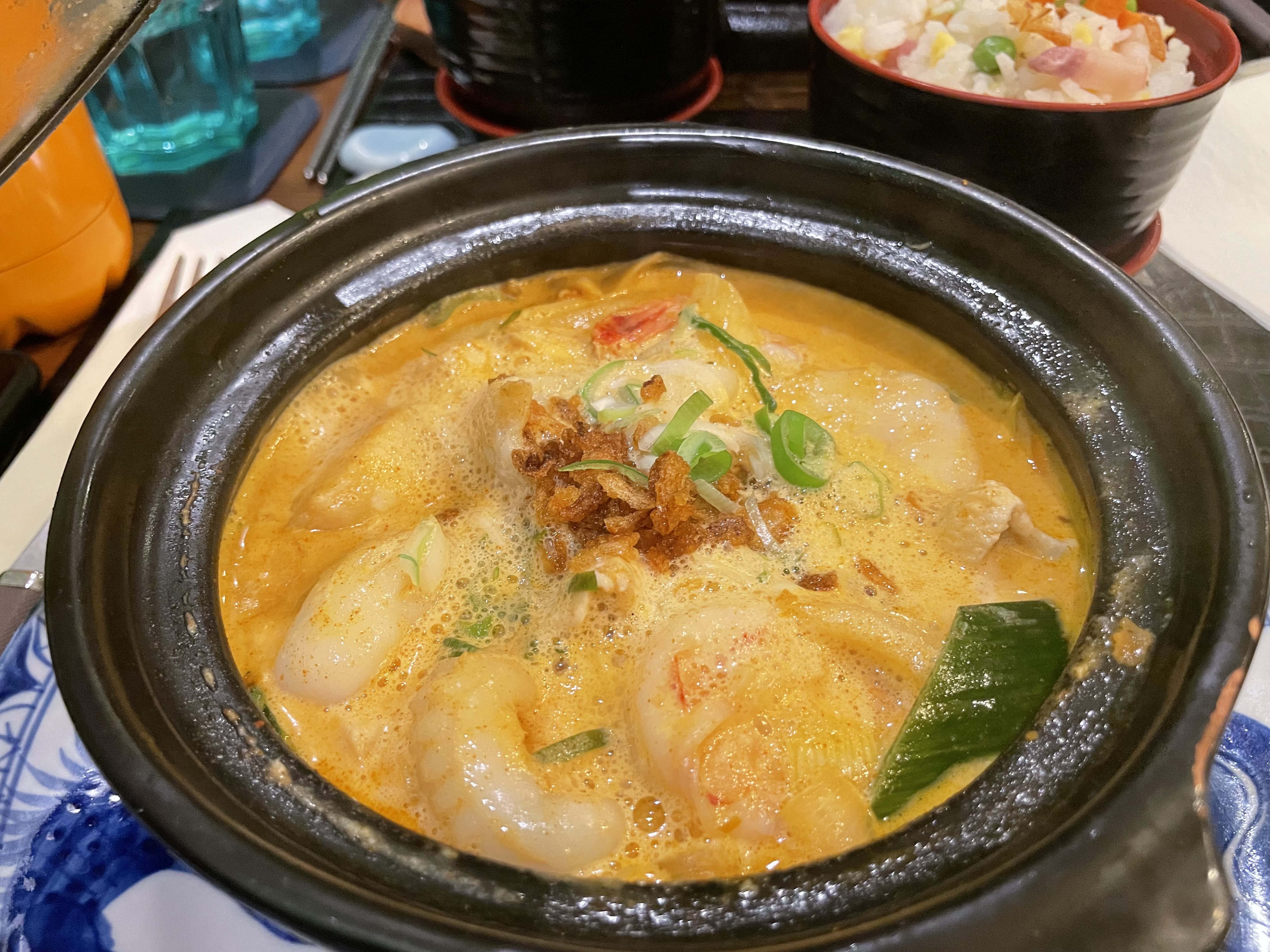 La nourriture était excellente ! Le curry était parfaitement parfumé et les crevettes et les légumes étaient bien cuits.