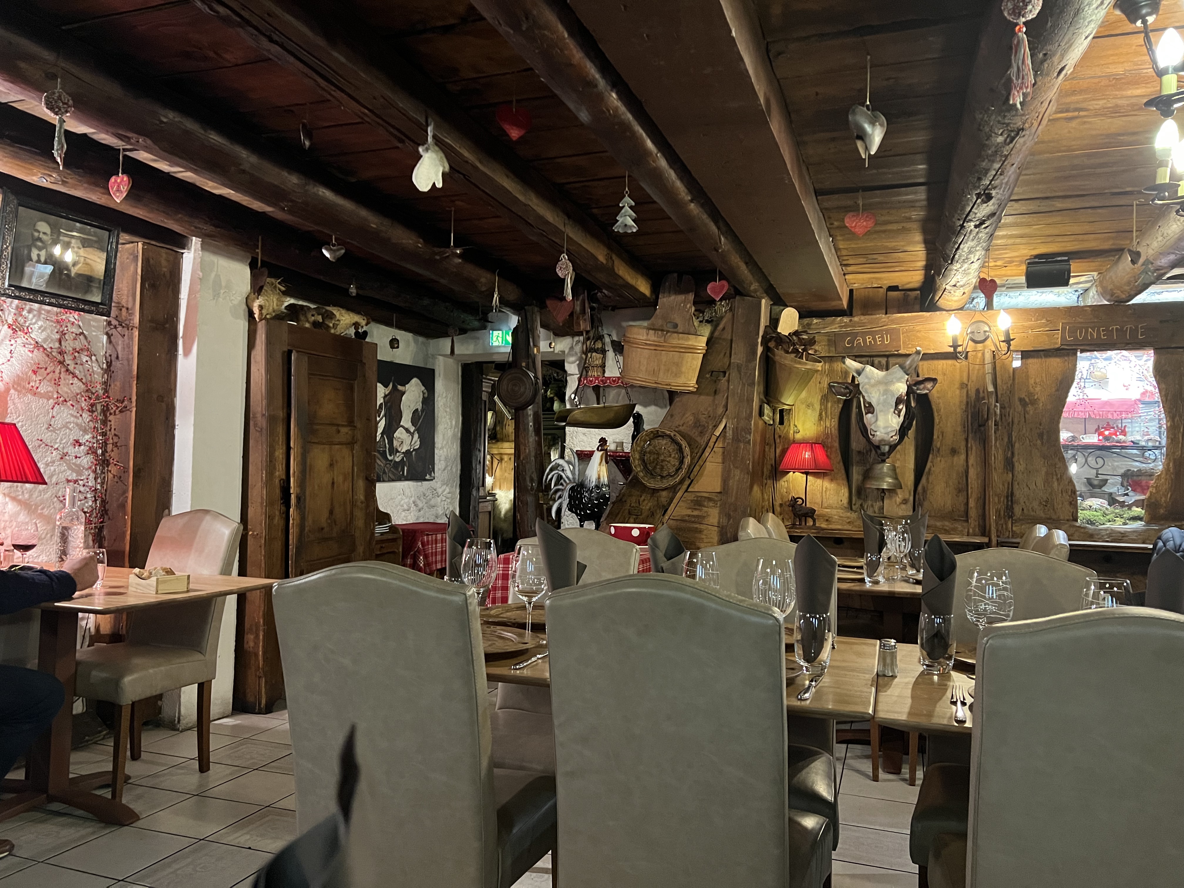 La décoration est sympa. Vous avez plusieurs choix, plutôt gastronomique ou plutôt cuisine locale, ainsi que des menus. Accueil pas plus chaleureux que ça. Raclette sympa, mais pour moins cher que ça d'autres restaurants font au moins aussi bien. Pour le côté plus gastronomique c'est bon, mais pas non plus exceptionnel, cela reste du classique amélioré. C'est de la bonne cuisine , mais c'est tout de même réservé à une clientèle aisée, car les entrées sont en moyenne à 20€ par exemple. En fin de repas vous aurez sûrement droit à une framboisine qui est délicieuse. C'est une petite attention sympa qui mérite de rajouter une 4ème étoile sur cet avis 👍.