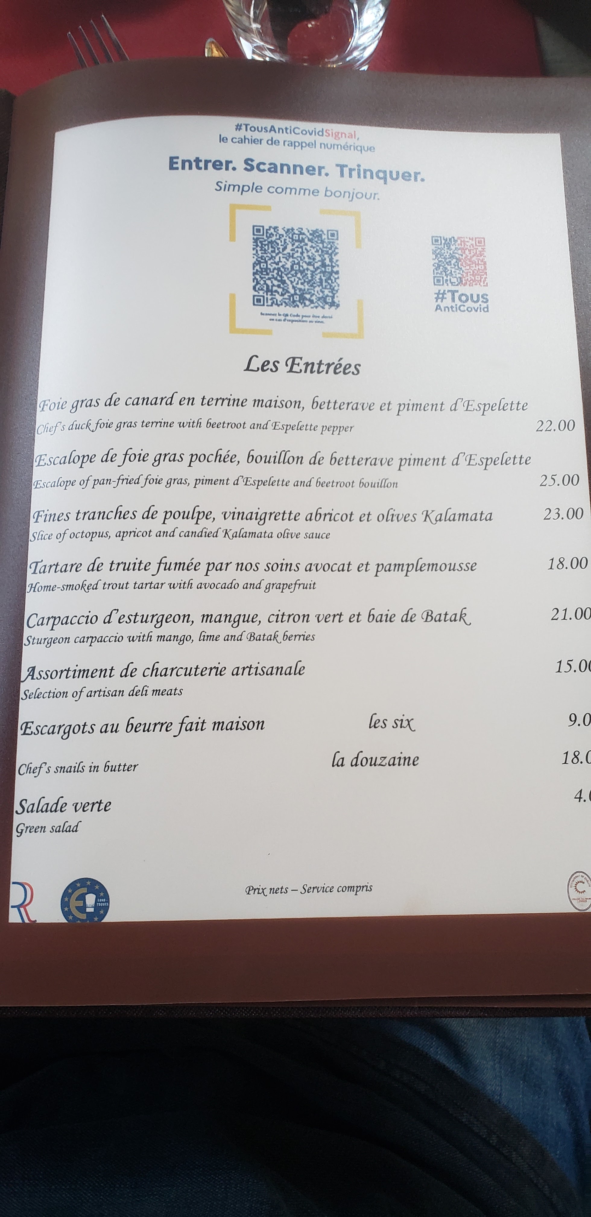Excellent repas , super service. Des associations de saveurs impensables. Le menu à 45 eur vaut son prix ( menus de 18.50 à 55 €)