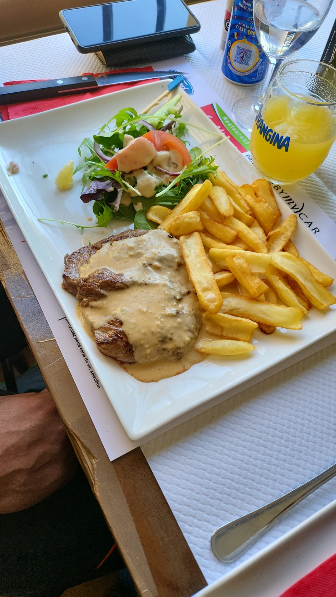 Cuisine avec des produits frais (pris le plat du jour), simple mais goûteux. Service très agréable et ambiance extra. J'étais avec un groupe d'amies, nous avons profité de la musique et même de danser accompagnées par le personnel en fin de service. Très bien pour des repas de groupe, vaste salle et parking gratuit.