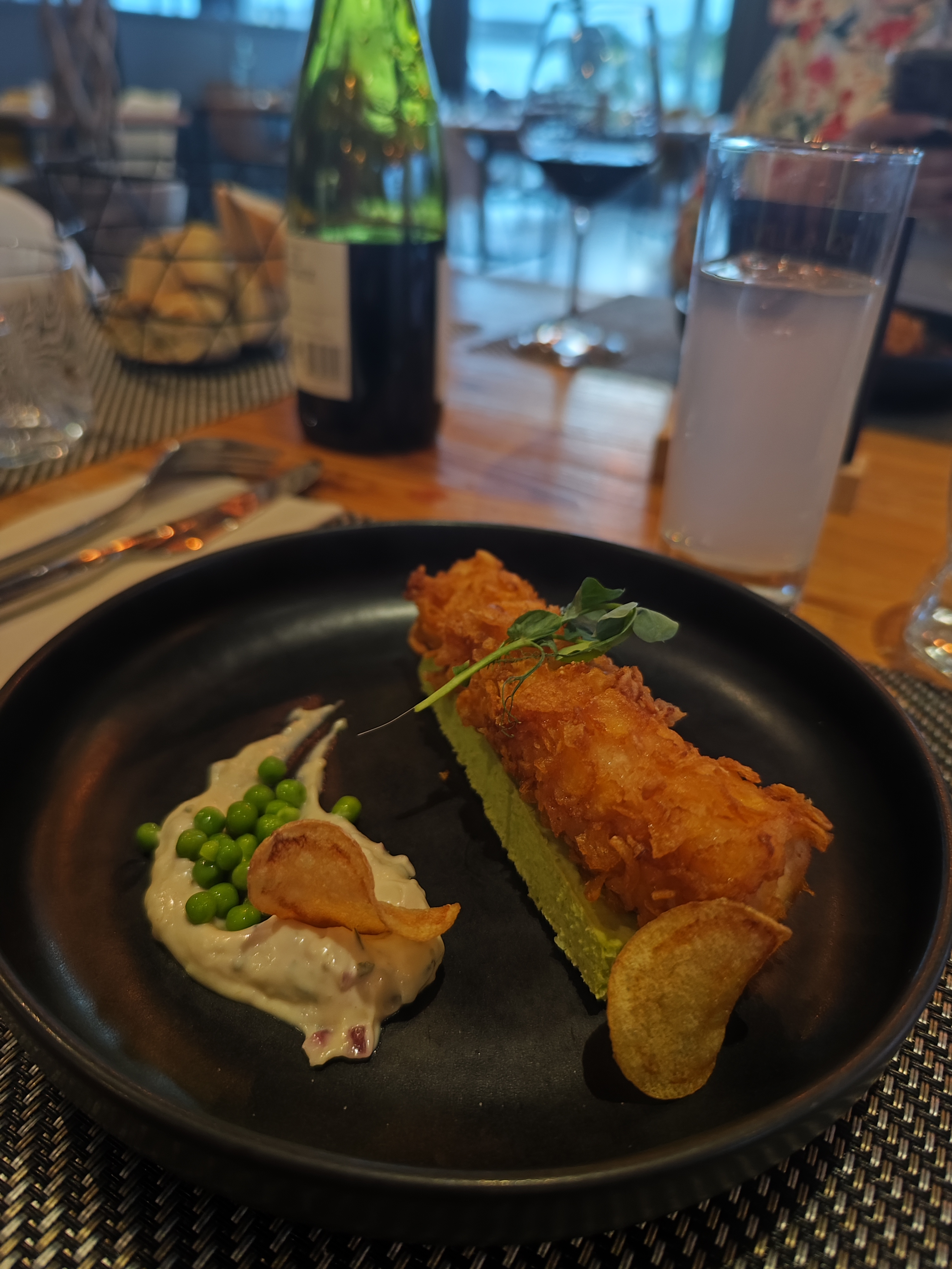 Déçue par le goût des aliments bruts mais les accompagnements sont originaux. En entrée, j'ai pris un fish ans chips. Le poisson n'avait pas trop de goût. Le panna cotta avait plutôt le goût d'une purée de petits pois épaisse mais avec peu de goût et la sauce tartare n'était pas trop mauvaise. Les textures n'étaient pas très agréables. Les chips de pomme de terre étaient molles. Pour le tataki, encore une déception. Le thon était fade. Les tomates étaient fades, la pastèque était fade et toute molle. Ce qui était bon était la sauce.... Et pour le pavlova, les fruits frais n'étaient pas sucrés sauf peut être le raisin. La sauce à l'estragon était originale et bonne.