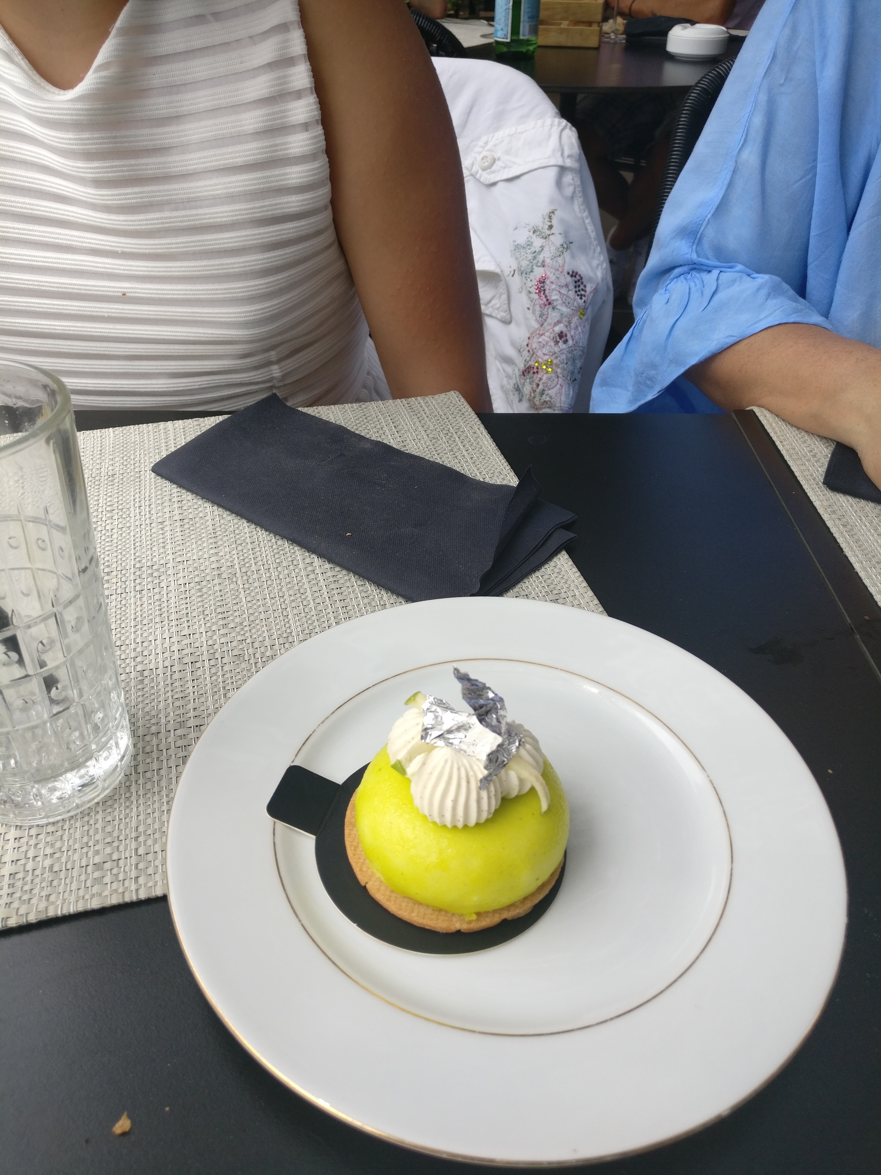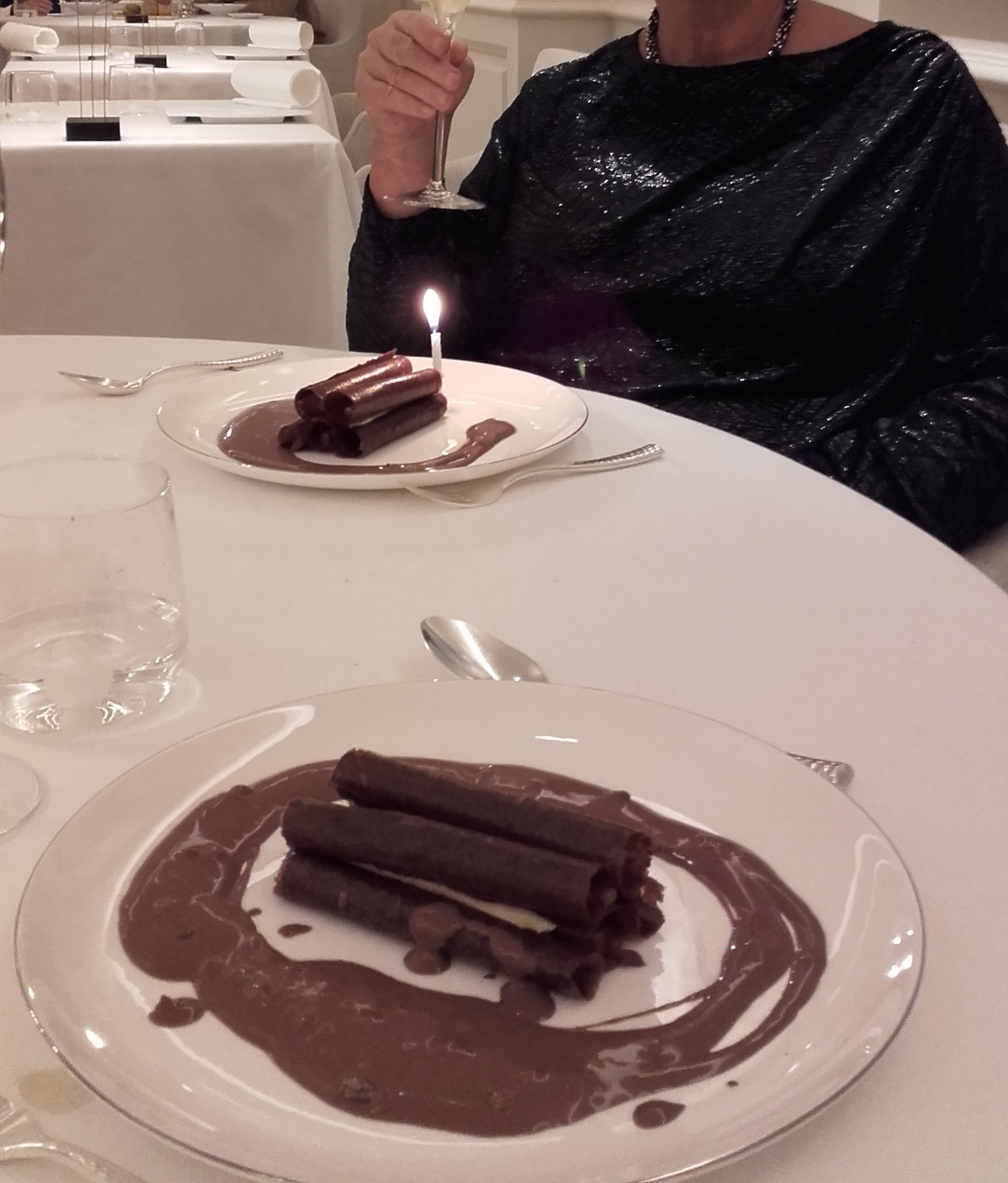 Je n'ai pas voulu casser l'ambiance un jour de fête donc je n'ai rien dis sur le moment. Aujourd'hui en regardant les photos je me demande si ce dessert est digne d'un deux étoiles Michelin? Le patissier décrit comme talentueux par le guide devait-il laisser partir un dessert si peu soigné en salle? A vous de juger!