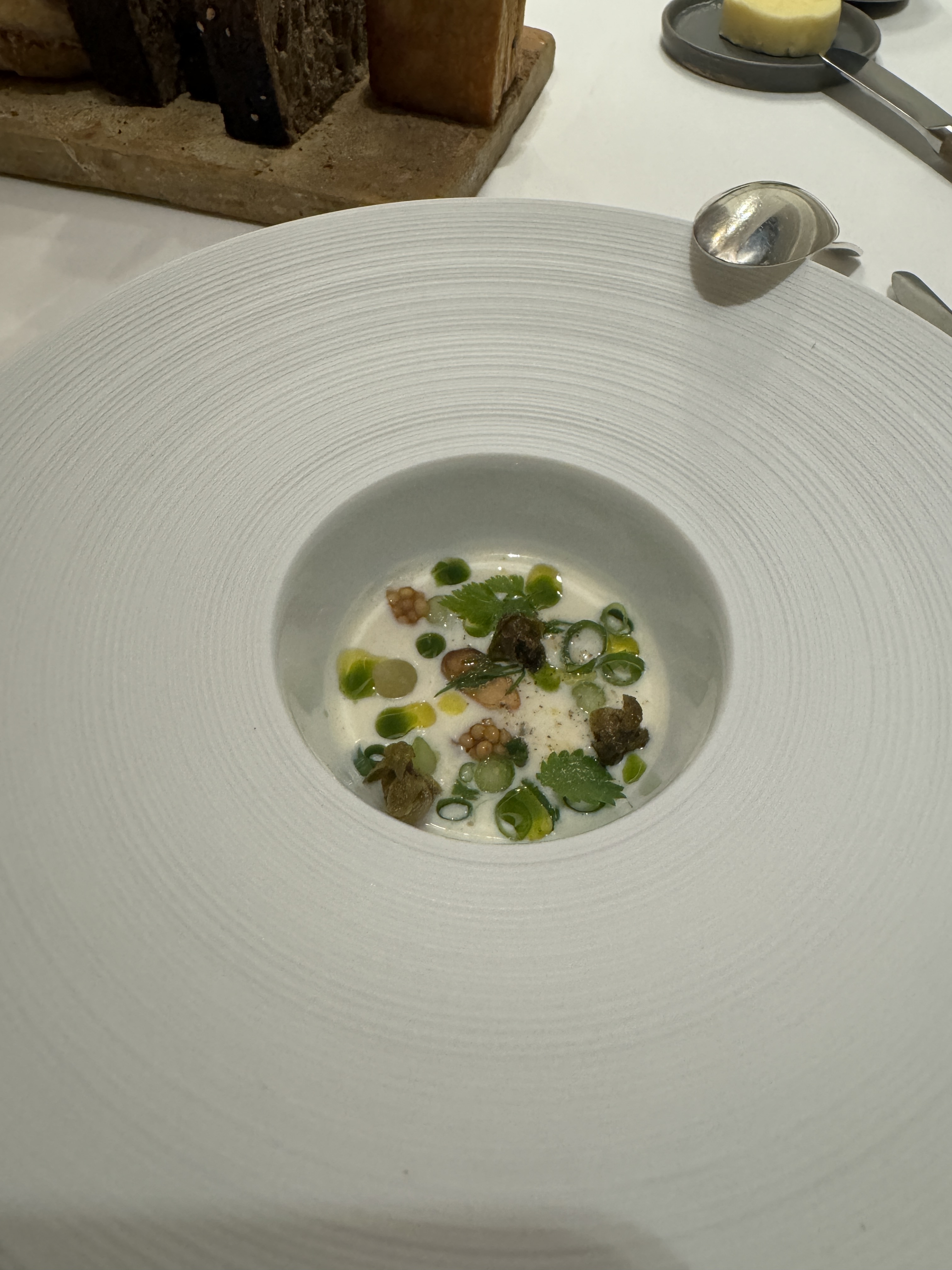 Déjeuner parfait, tout en finesse et en subtilité. Produits exceptionnels (la langoustine est sublime), service très pro et souriant. Le pain est fait maison (mention spéciale pour le pain brioché à la truffe noire). Le chef, très sympathique, prend le temps de venir saluer ses hôtes. Un endroit magnifique!