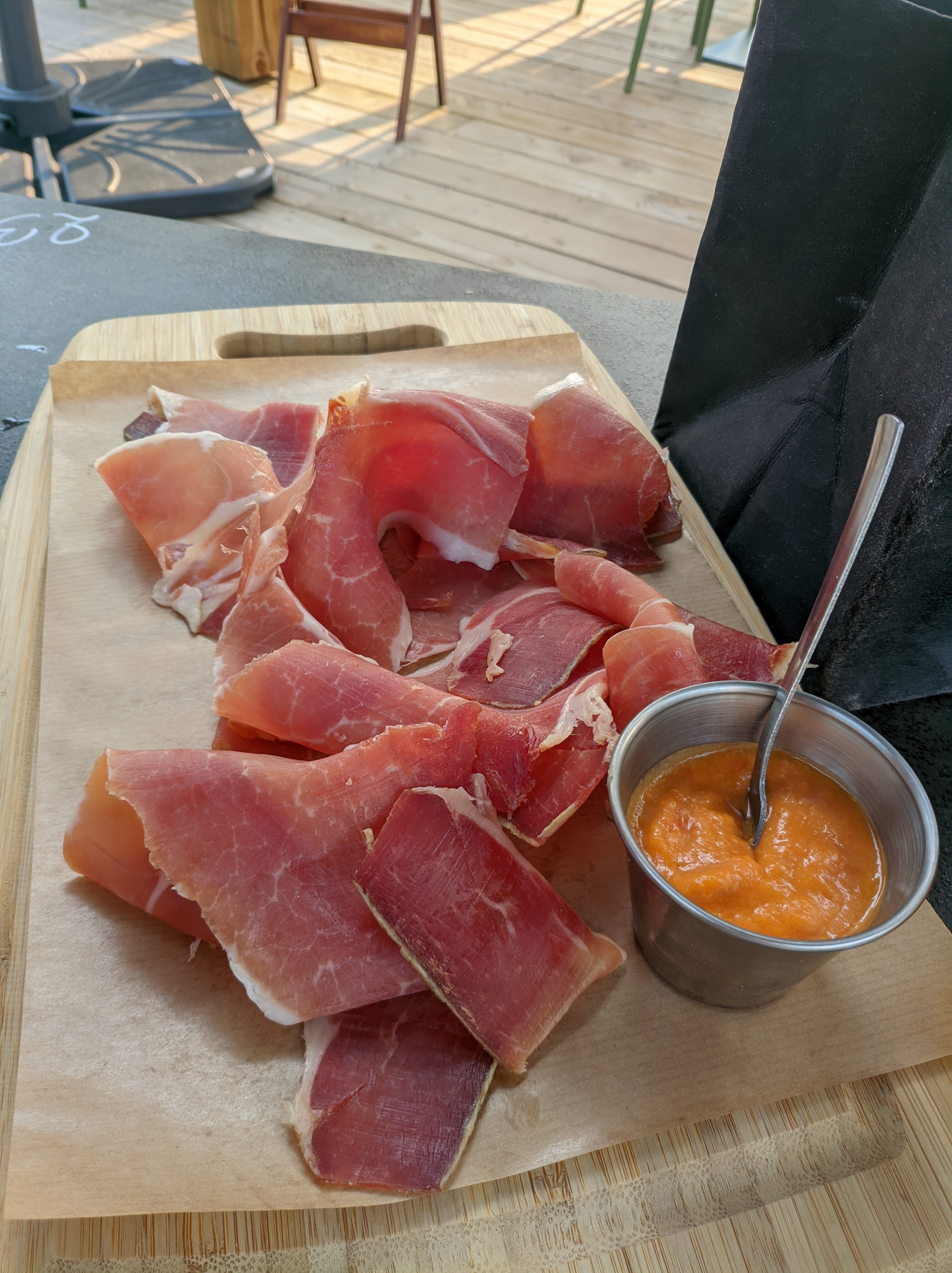 Très joli cadre, je pense que c’est cela qui justifie le prix. Serveuse très gentille et serviable; en revanche sur Google il était noté un menu à 39€ avec fruits de mer à volonté…Or ce n’est pas à jour. Tout est à la carte… Déception sur l apéro… un martini rouge englouti en 1/2 gorgée et une bière pas très fraîche pour mon homme. Nous avions hésité entre la planche de jambon Serrano avec pan con tomate et le jambon ibérique. La gentille serveuse nous dit qu elle peut nous mettre une petite assiette de pan con tomates à côté; ce qui nous sous entend qu’elle fait un geste, et nous en somme ravis. Nous commandons une bouteille de Chablis qui est arrivée pas assez fraîche au mon goût mais heureusement on a eu des glaçons. Le plateau de fruits de mer étais bien présenté et les crevettes très bonnes; en revanche l’aïoli me semble industriel… Et pour finir quand nous passons à la caisse et après avoir payé nous nous rendons compte que la bouteille de vin était facturée 42€ au lieu de 38€ et la petite attention de la serveuse était facturée aussi 5€ de plus… C’est pas pour le prix mais c’est la manière de faire les choses… Le Mr de la caisse n’a pas relevé pour le vin après qu’on lui a dit…. C’est dommage on se rends vraiment compte que c’est pas très professionnel. Ah oui aussi, pour ceux qui ont peur des insectes, beaucoup de mouches vertes qui essaie de se poser sur les plats….