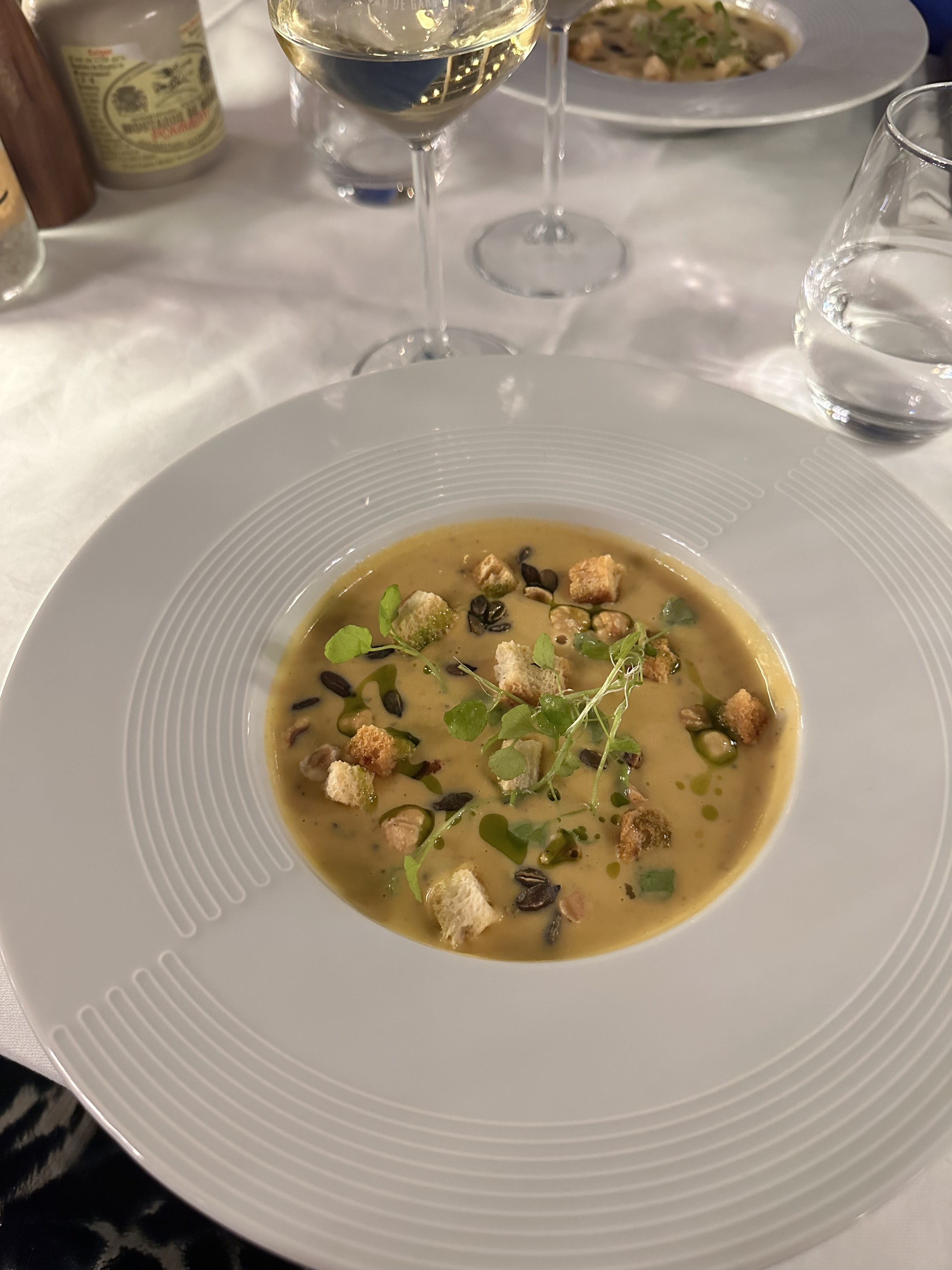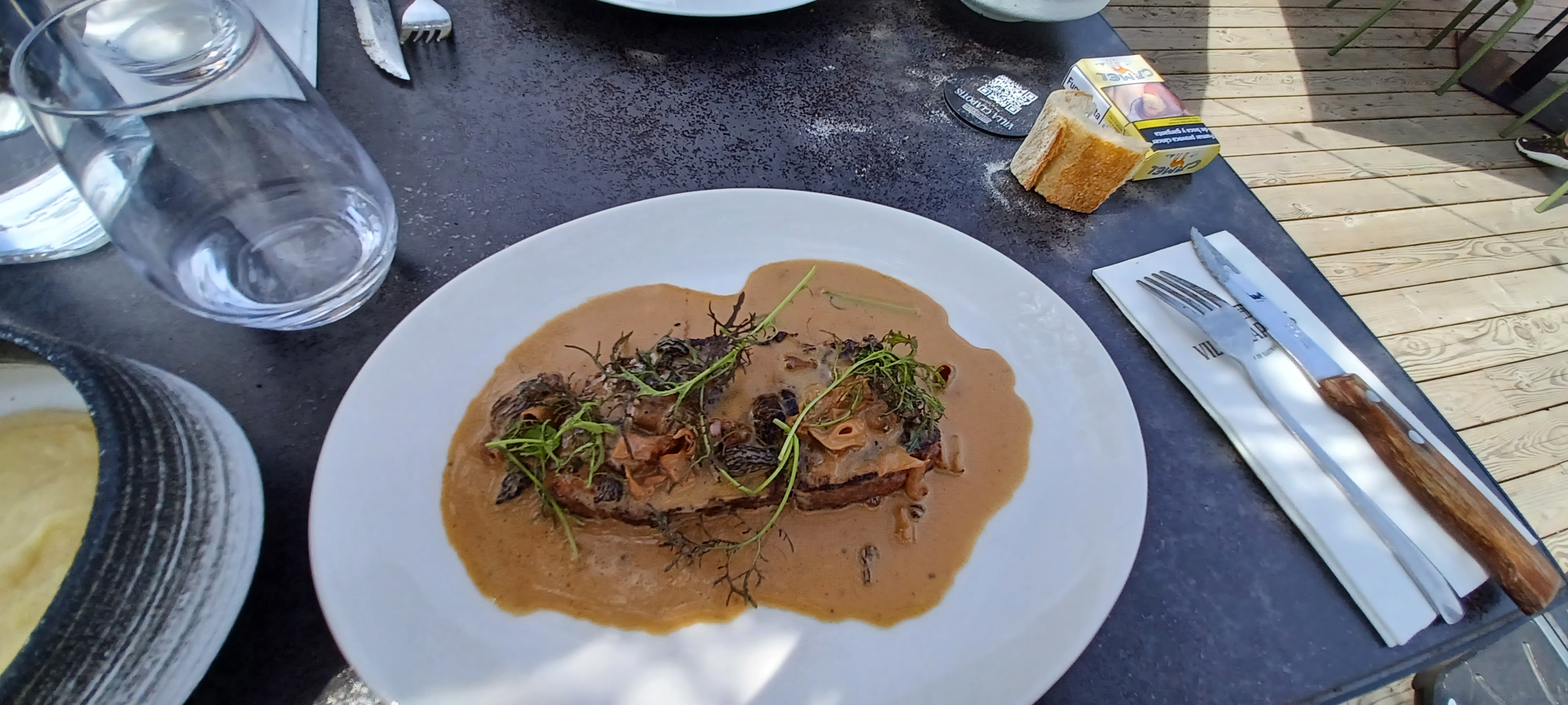 Comme c’est indiqué dans tous les avis le cadre est magnifique. En revanche les prix sont plutôt très élevés. La qualité est au rdv mais les plats restent très simples. Le service a été d une extrême longueur. Plus d’une heure et demie pour avoir les plats! Obligés de réclamer pour le pain, pour l’eau…. Notre serveur faisait ce qu’il pouvait mais semblait débordé. Après cette interminable attente nous demandons avec le sourire un geste ( un petit digestif). Réponse : un non catégorique. On part avec un goût amer et plutôt déçus. Une mention particulière pour le groupe de musique très sympa.
