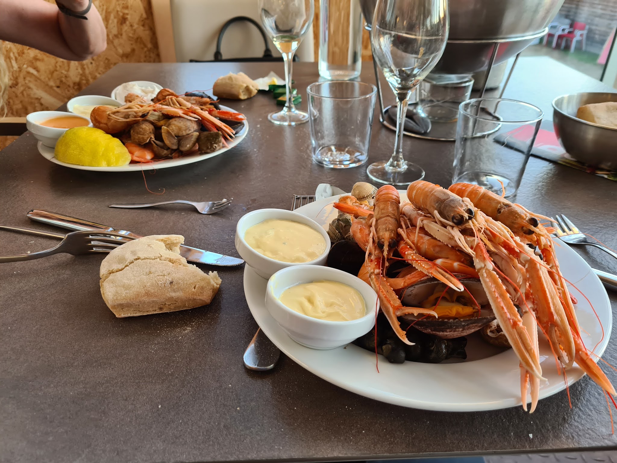 Un régal ! Des fruits de mer bien frais à volonté, assiettes de poissons bien dosé pour ne pas gâcher :) Soupe de poisson délicieuse ! (un peu très poivrer/pimenter) mais délicieuse ! Un bon moment entre amies