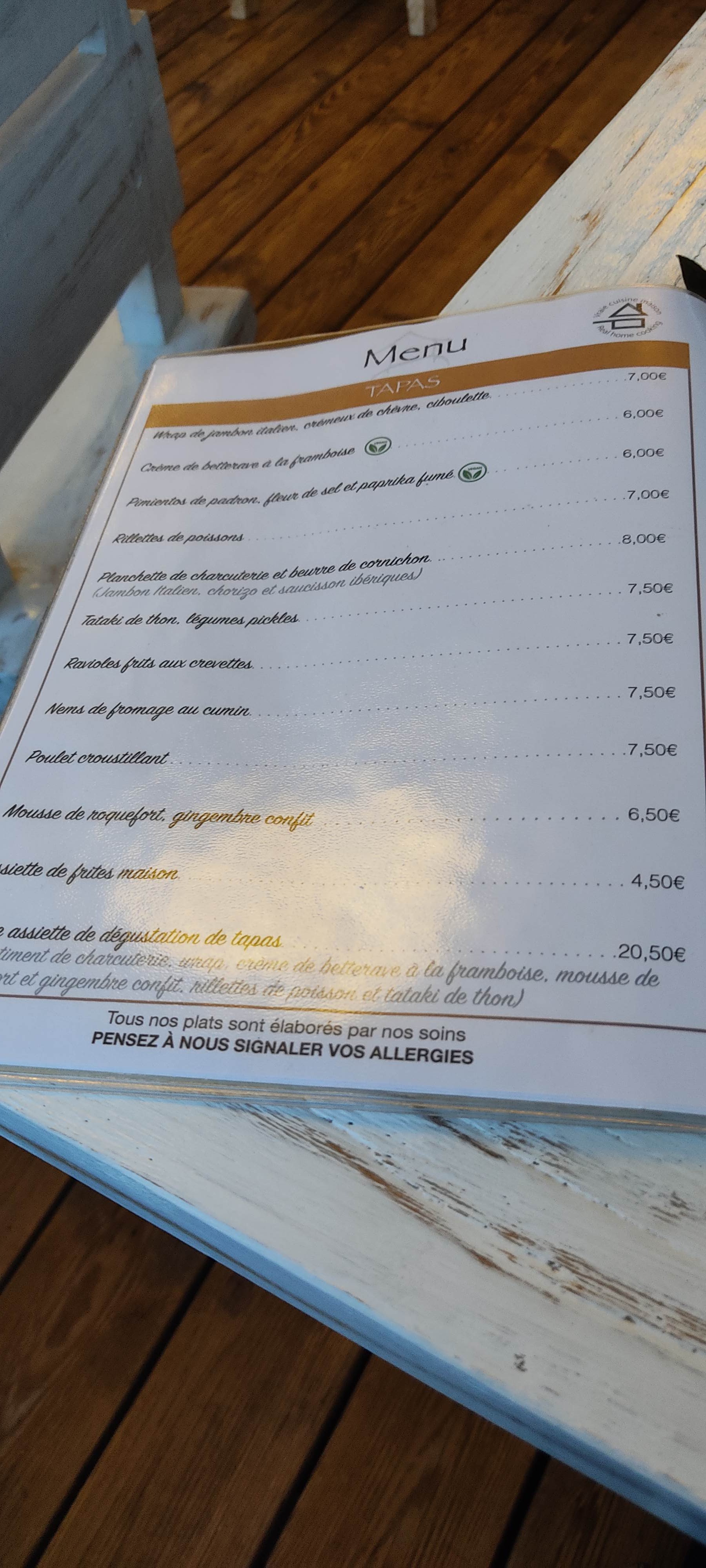 J'y suis allé hier avec ma femme et mon fils de 2 ans et demi. Nous arrivons et déjà constatons que certaines personnes se déplacent régulièrement sans masque alors qu'il est obligatoire (panneau à l'entrée). Aucun rappel à l'ordre par le staff. Le décor est très sympa et le lieu est propre et bien aéré. Nous regardons la carte, le prix d'un plat est de 19 euros environ. Nous en prenons deux et demandons s'il est possible d'avoir 2/3 frites à la place d'un peu de riz d'un de nos plat afin que mon fils puisse piocher dedans. La serveuse va se renseigner et reviens 10 minutes après... non catégorique, ce n'est pas possible; pour avoir ces 2/3 frites, il faut acheter la tapas frites à 4.5 euros ! Sérieusement, autant la nourriture est correct, mais quand je vois ce type de comportement qui pousse à la consommation (on nous a dis et insisté sur, vous prenez pas de tapas en entrée... vous êtes sûr que vous ne voulez pas du vin etc...) ça ressemble à un faux air de saint tropez version touriste. Très déçu par ce comportement que j'ai du mal à comprendre... devant autant de logistique et si peu de respect des gestes barrières. Je n'y retournerais pas, l'aspect familiale a disparu pour l'aspect administratif de la restauration. Bien dommage car la cuisine était au rendez vous (bravo au cuisinier). La personne derrière le bar était elle aussi très sympa et souriante. Il serait temps que le petit futé intègre d'autre critères que l'aspect nourriture dans sa notation...