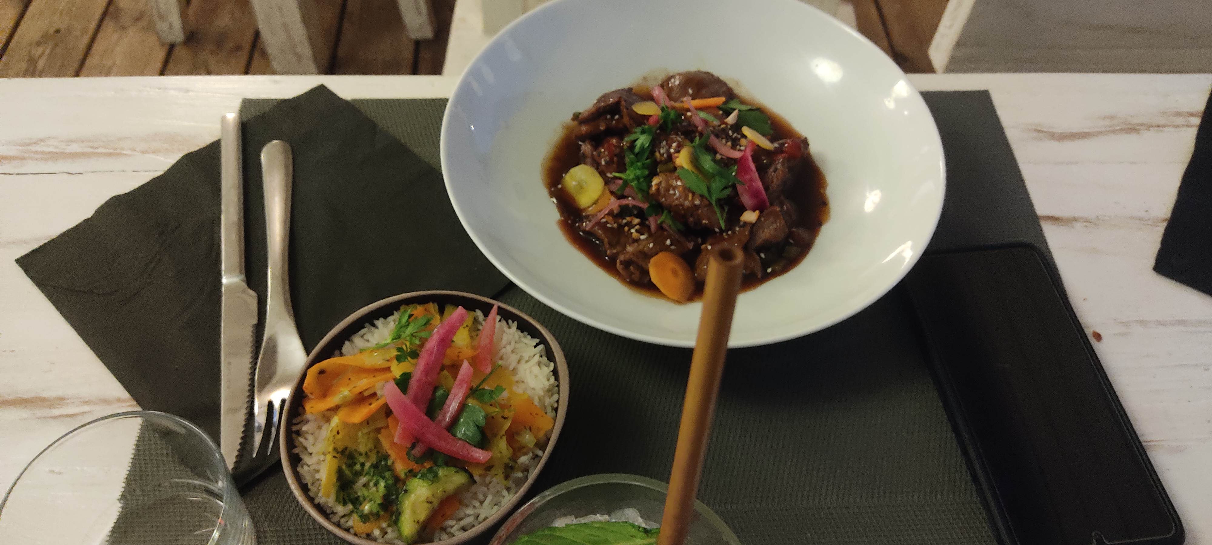 Cadre magnifique et reposant, plats atypiques remplis de saveurs et d'envie de voyage. Belle expérience, merci à toute l'équipe, continuez comme cela👍.