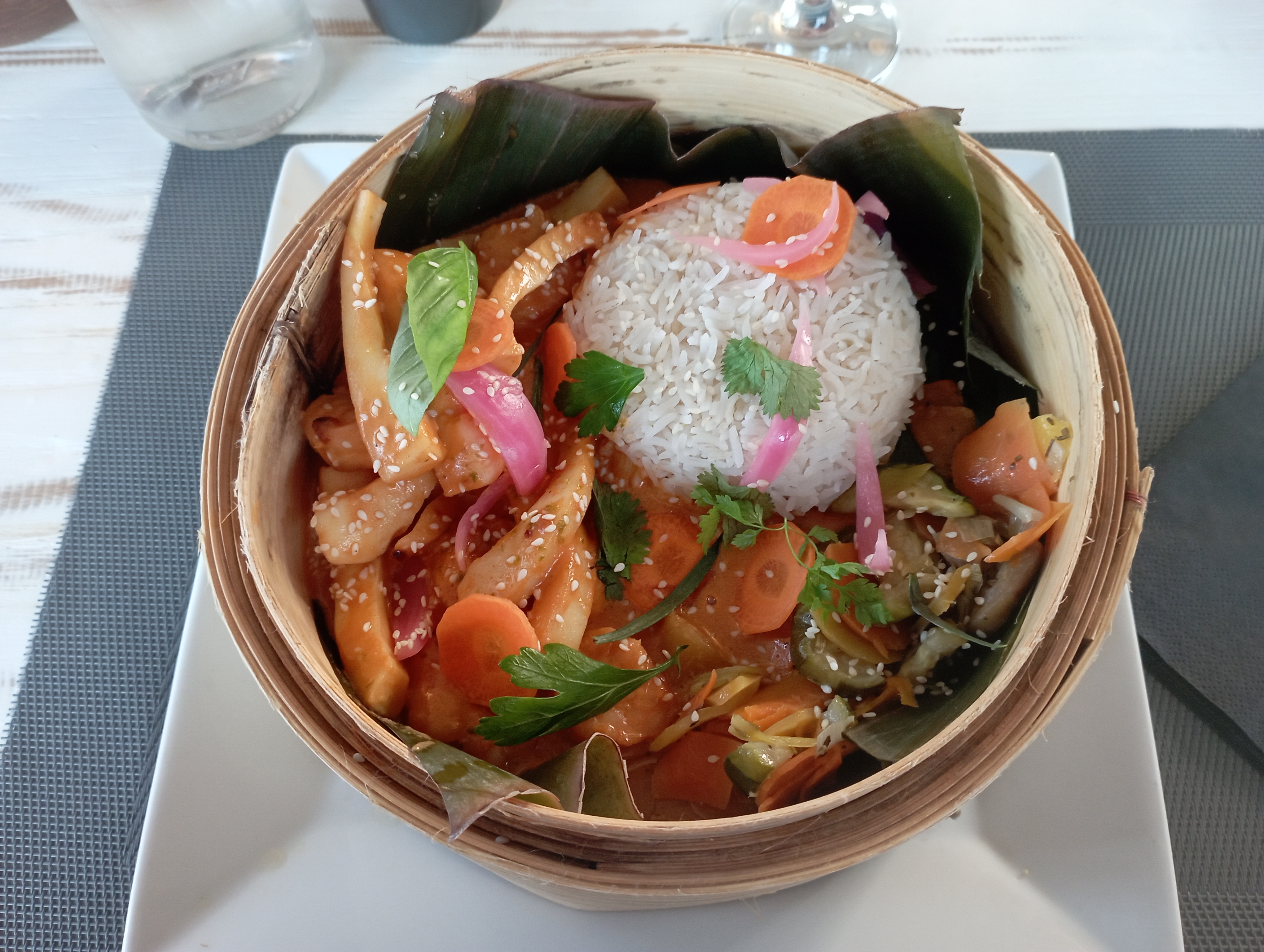 Des Saveurs exotiques et asiatiques mariées aux produits de la terre et de la mer... J'ai adoré. Très bon rapport qualité/prix, cadre très joli, service sympathique et souriant. Pour sûr, j'y reviendrai !