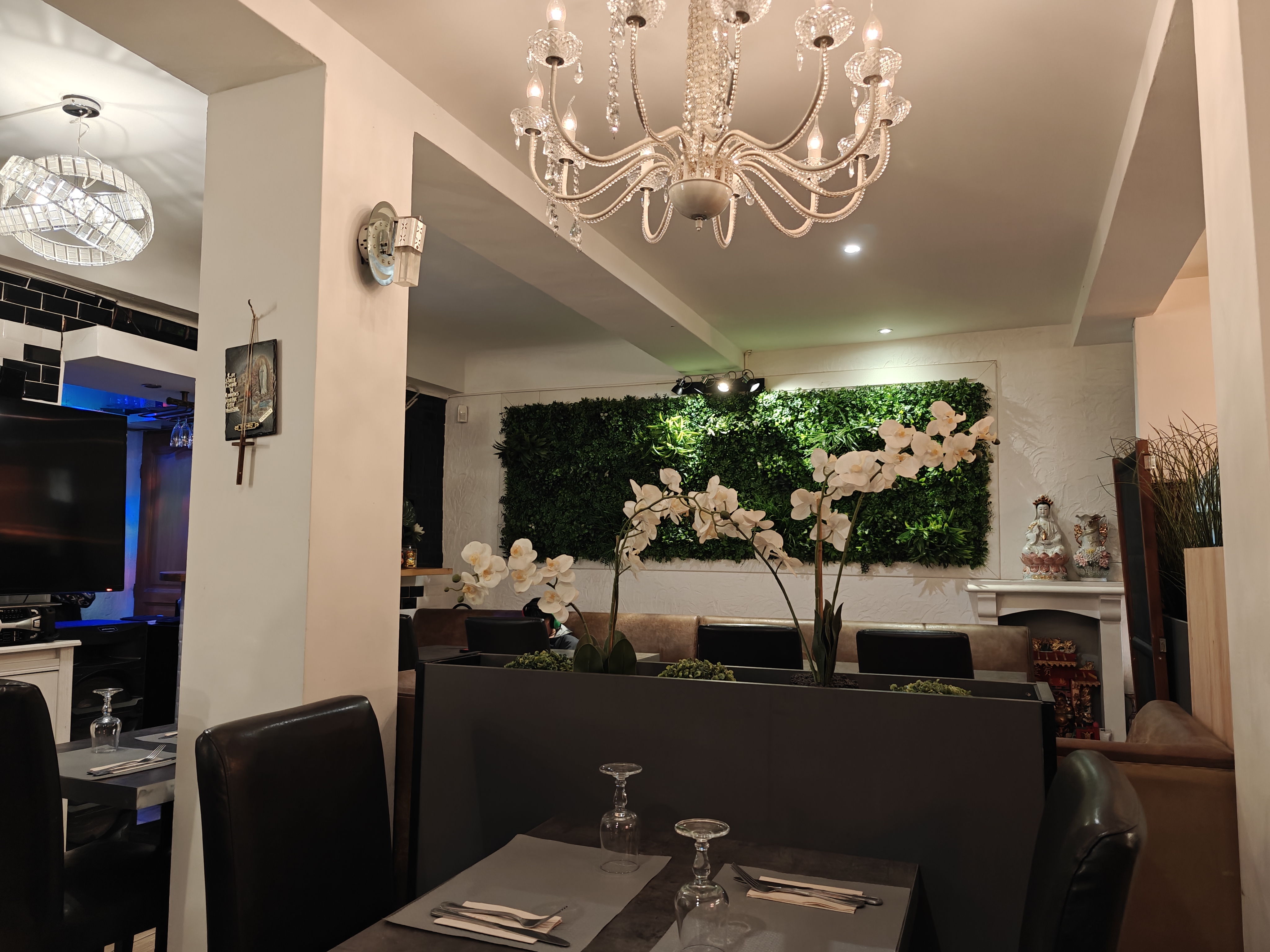 Décor surprenant à l’entrée de l’établissement avec des plantes et lumière apaisant. Accueil très froid du personnel avec des éléments manquants sur la table, il fallait demander pour chaque personne séparément :/ Qualité déplorable de nourriture, on a commandé une salade choux et hao cao à la vapeur qu’on a pas pu avaler. Le plat de gambas était servi avec un riz que je ne peux qualifier que d’horrible, rapport qualité prix inexistant. Expérience très désagréable dans cet établissement, à ne pas refaire.