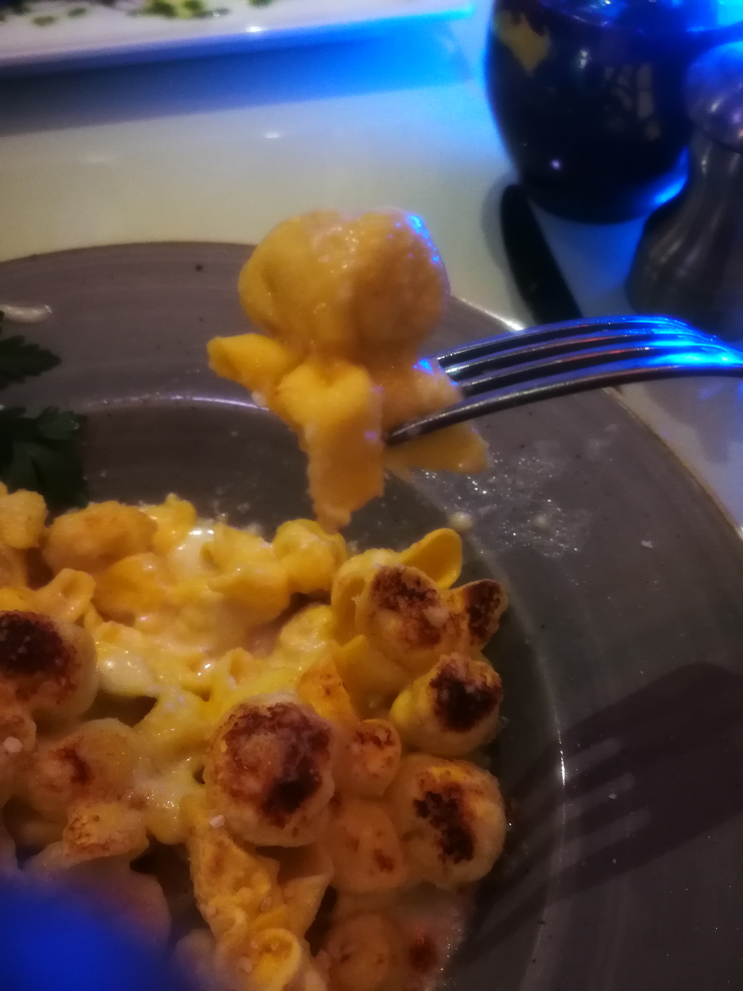Nourriture italienne pas mauvaise, mais pas extraordinaire. Pâtes à la truffe (35 euros) moyennement bien cuites. Service hasardeux, voir discutable avec les tables autours de nous. Petite surprise, un joli bout de carton d’emballage servit avec notre mozzarella en entrée ! À bon entendeur👂🏼