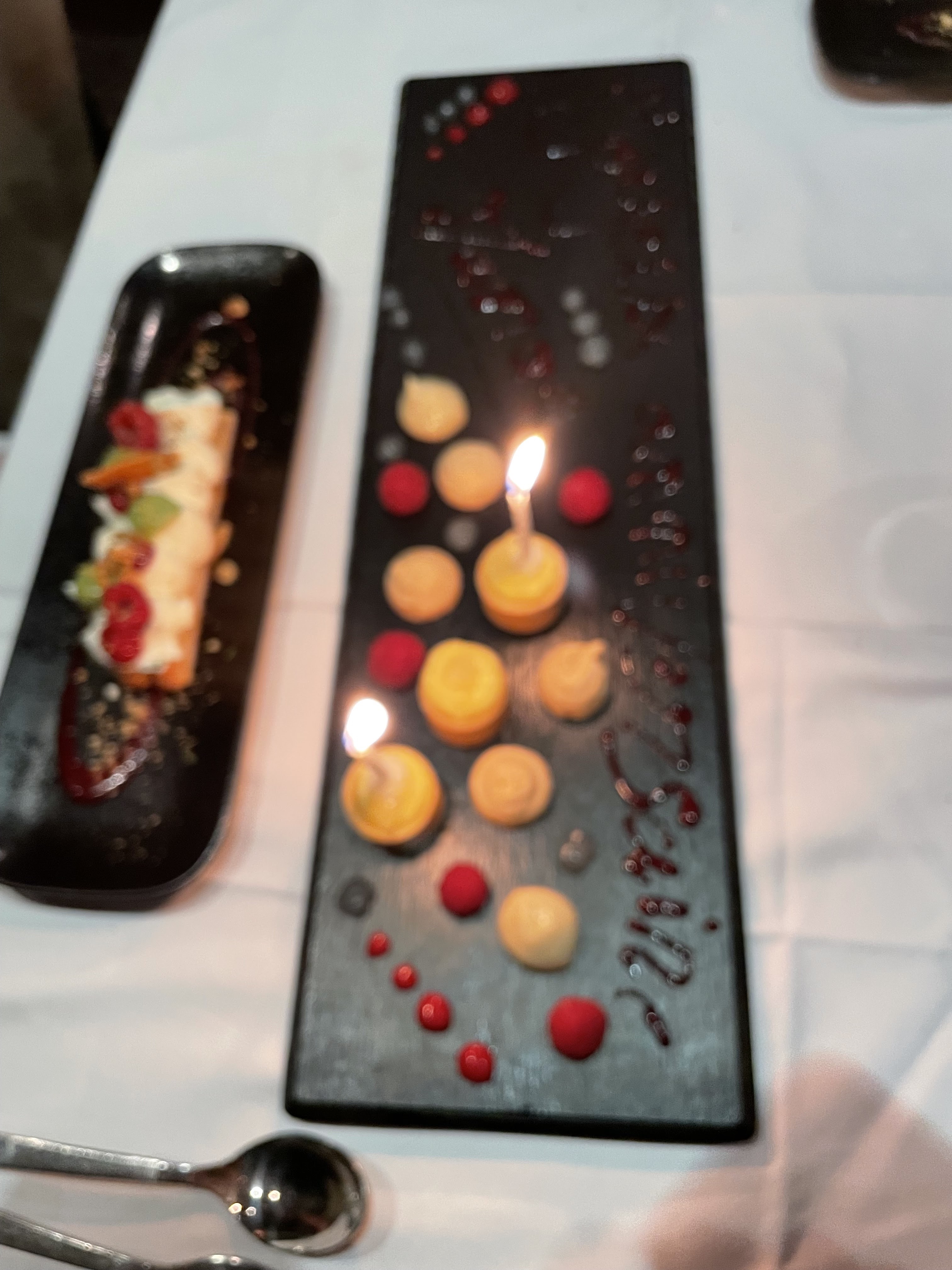 Merci au chef Benjamin pour se dessert à la carte personnalisé, merci pour ces délicieuses saveurs au visuel élégant et aux goûts subtiles. Nous remercions également Mehdi pour son accueil, sa bienveillance, son humour et sa générosité pour ce moment extraordinaire hors du temps. Une décoration raffiné et exotique qui ne peut que faire voyager Tout simplement merci pour avoir connecter tous nos sens dans cette merveilleuse soirée en votre compagnie Tika , steffy et hynde