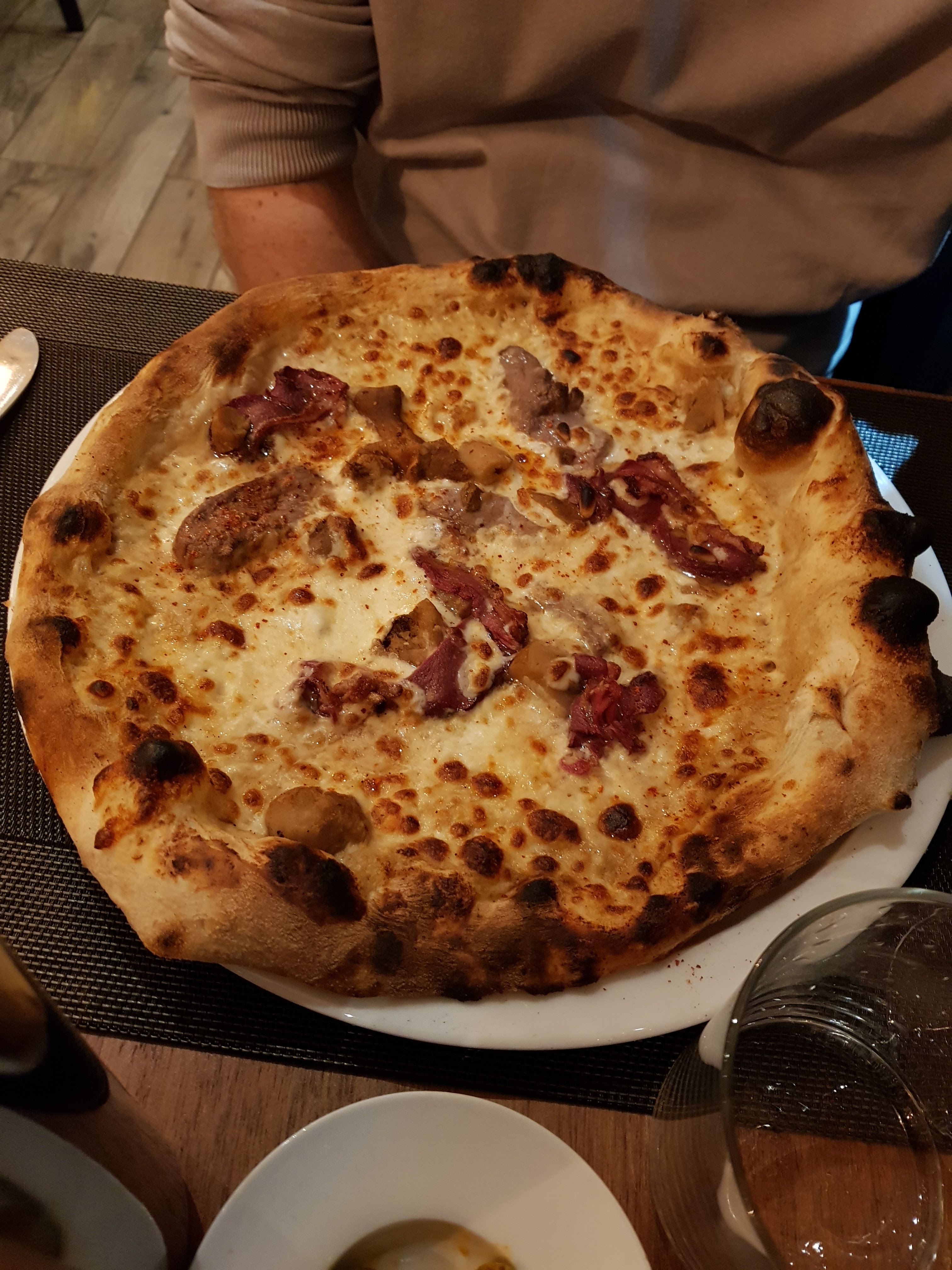 Ce restaurant propose de très bons plats, j’avais commandé une pizza qui était très bonne. Cependant j’enlève 2 étoiles pour 3 choses: - le service, une jeune femme nous a servi et n’était vraiment pas agréable ni commerçante; - pour l’ambiance qui n’est pas du tout conviviale, on n’ose pas parler fort, ça peut donc être gênant pour une soirée entre amis, on n’a pas envie de chuchoter; - ainsi que pour la pizza à la truffe parce que des amis ont commandé cette pizza et n’ont trouvé 0 morceaux de truffe alors qu’ils avaient bien redemandé à la serveuse si c’était bien celle ci qu’ils avaient commandé. Je n’y retournerai pas et c’est dommage parce que c’était quand même très bon. (D’où les 3 étoiles quand même)