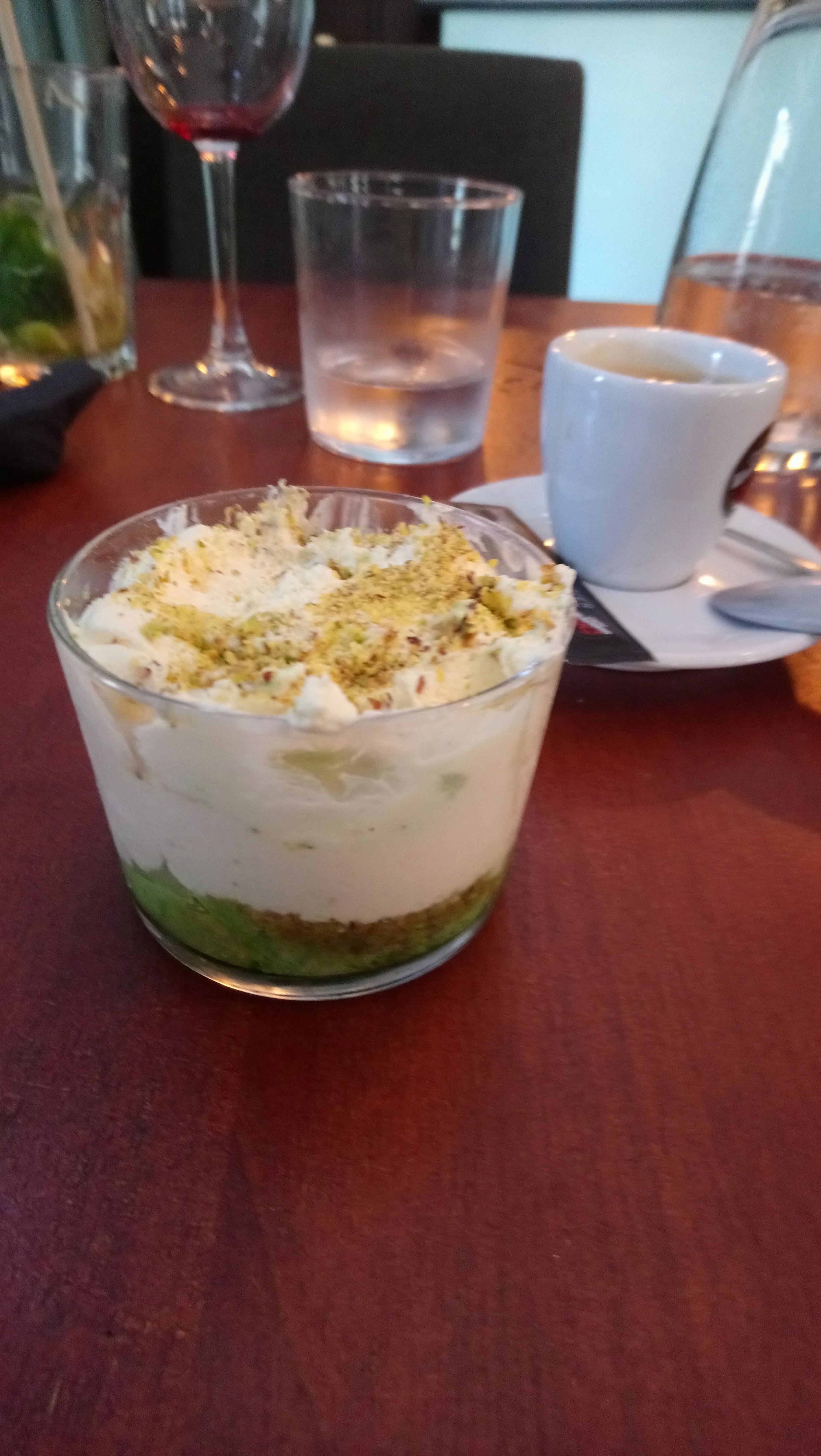 Je connaissais cette franchise sur Bordeaux, on en a pour le prix. Pizza aux aubergines avec une demi tranche d’aubergine, pas de parmesan sur la table ( obligé de le demander) et tiramisu aux pistache avec colorant vert. Bref, pour un midi à la pause repas, pas pire qu’une cantine d’entreprise à 3 euros le repas.