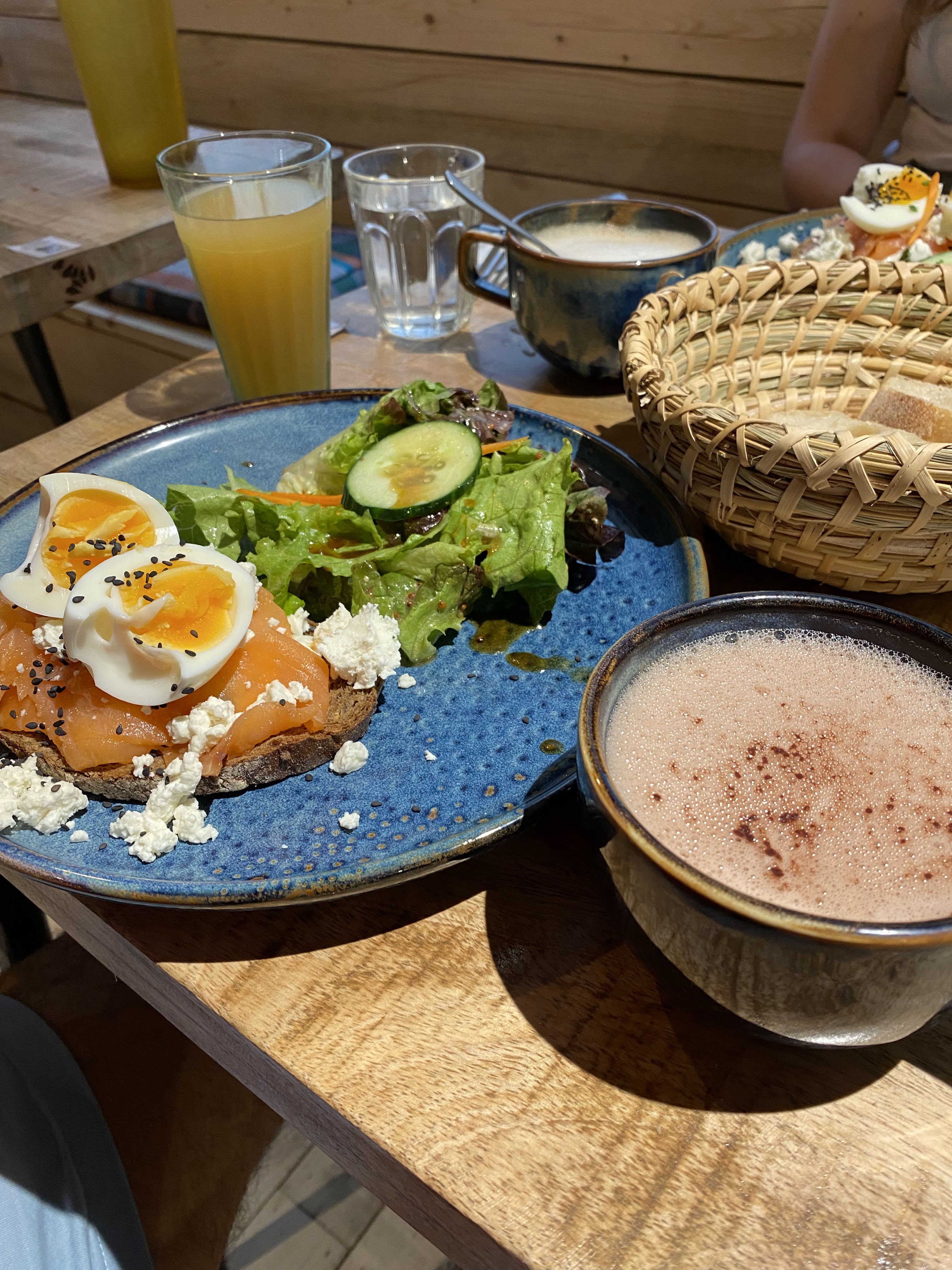 Super coffee shop et super concept store Le brunch est copieux pour 24 euros avec une boisson chaude le granola la tartine au saumon et oeuf le pain perdu . L’accueil est au top C’est une super adresse