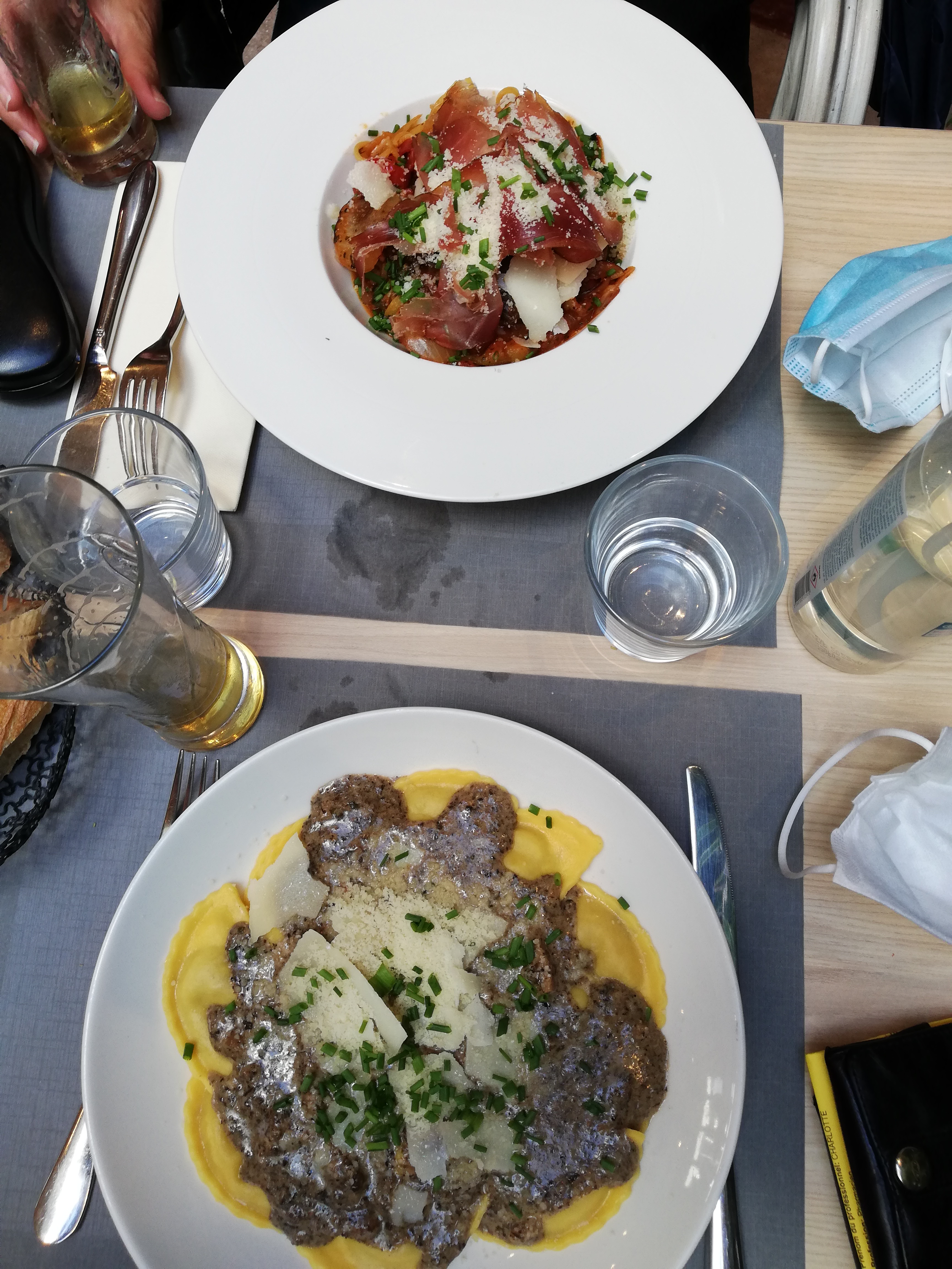Un super resto qui propose peu de plats mais d'excellente qualité ! J'ai commandé des Agnoloni aux quatre fromages ainsi que des Penne all'arrabiatta. Une vraie réussite. Les plats étaient très copieux et délicieux ! Comme on ne peut pas dîner sur place, nous avons commandé à 17h puis le tout nous a été livré à 19h (heure demandée) à notre hôtel, avec couverts et très bien emballé dans un sac. le tout est arrivé chaud pile à l'heure ! Le personnel est très gentil et aimable ! La livraison n'a même pas été facturée (peut être compensé par les prix). Les prix peuvent effectivement sembler élevés mais vu les portions proposées cela reste raisonnable. Une vraie réussite ! Le restaurant s'est totalement adapté aux conditions. Je recommande à 100%!!!!