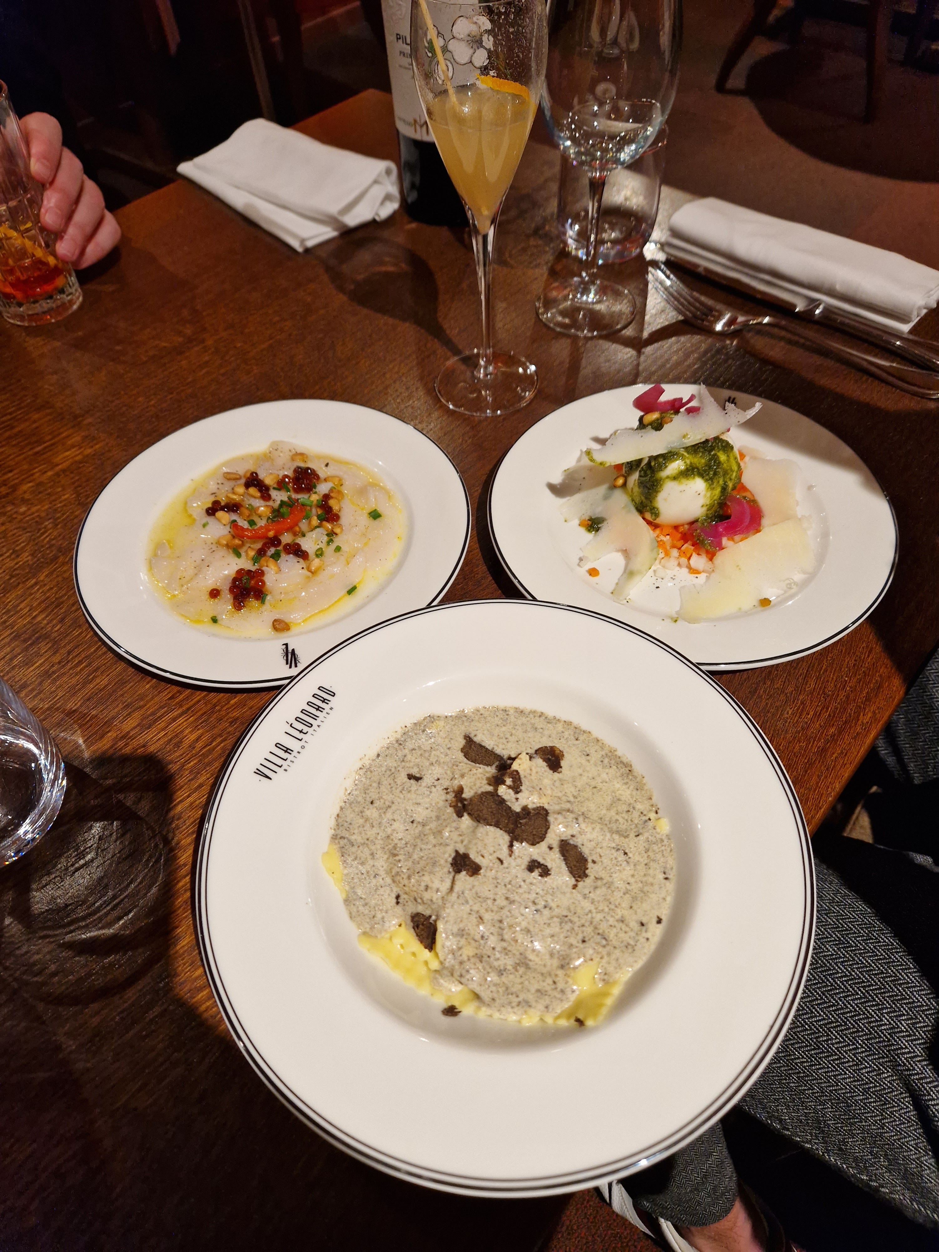 La villa Léonard est une restaurant italien où il est bon d’y passer une belle soirée, Nous avons dîner dans une belle ambiance. Le service est à la hauteur de ce que que nous avons dans l’assiette, La qualité est là aussi la quantité. La tagliatelle au gorgonzola ou le fromage est flambé directement dans la meule avec une Grapa avant de mélanger les tagliatelles directement dans la meule. Un véritable Délice tant visuel et olfactif. C’était une première dans cette établissement mais clairement pas le dernière.