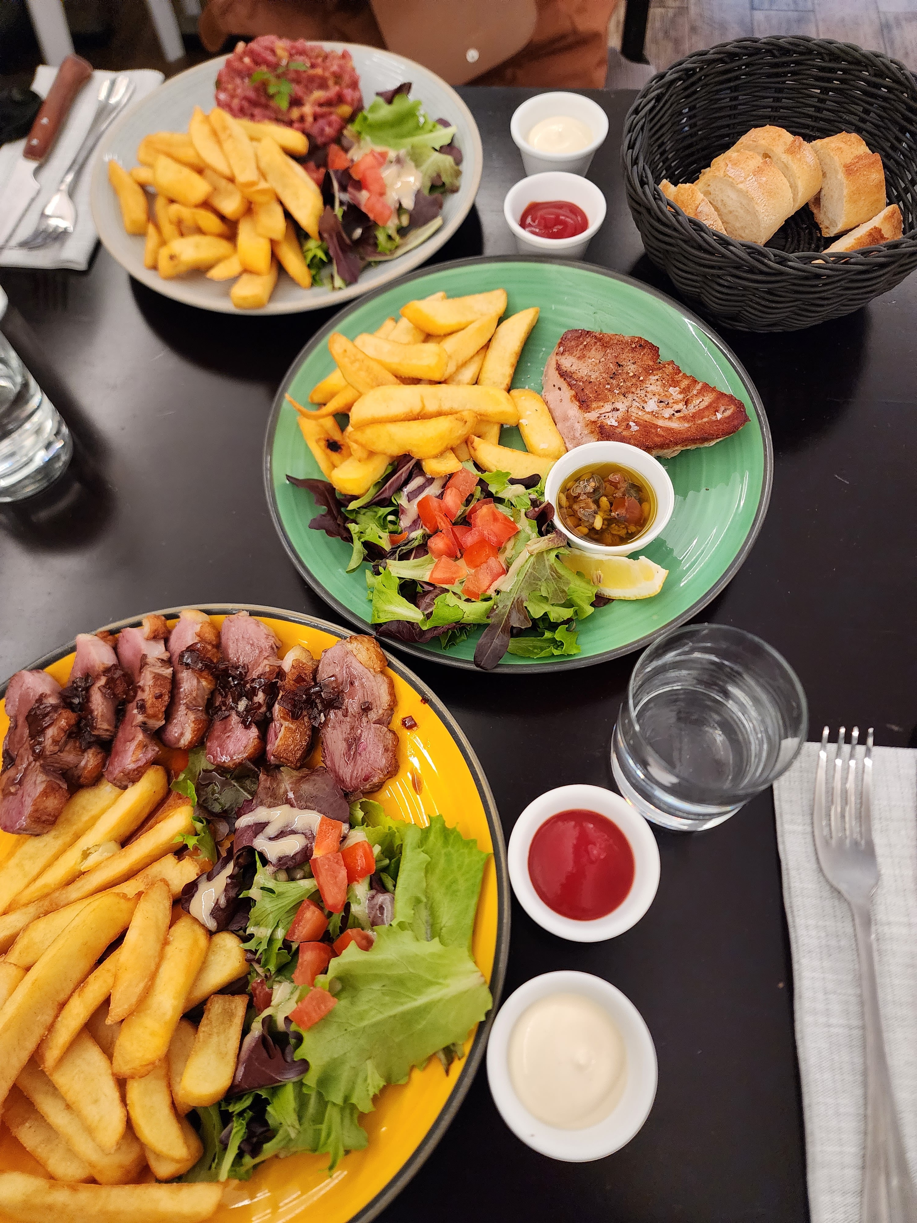 Très bonne expérience, nous avons mangé deux fois en deux jours et recommandons particulièrement le tartare et le magret de canard ! Le personnel était également très accueillant et nous a offert deux verres de vin gratuits à boire, et mon amie nous a offert un tiramisu gratuit pour son anniversaire ! Hautement recommandé!