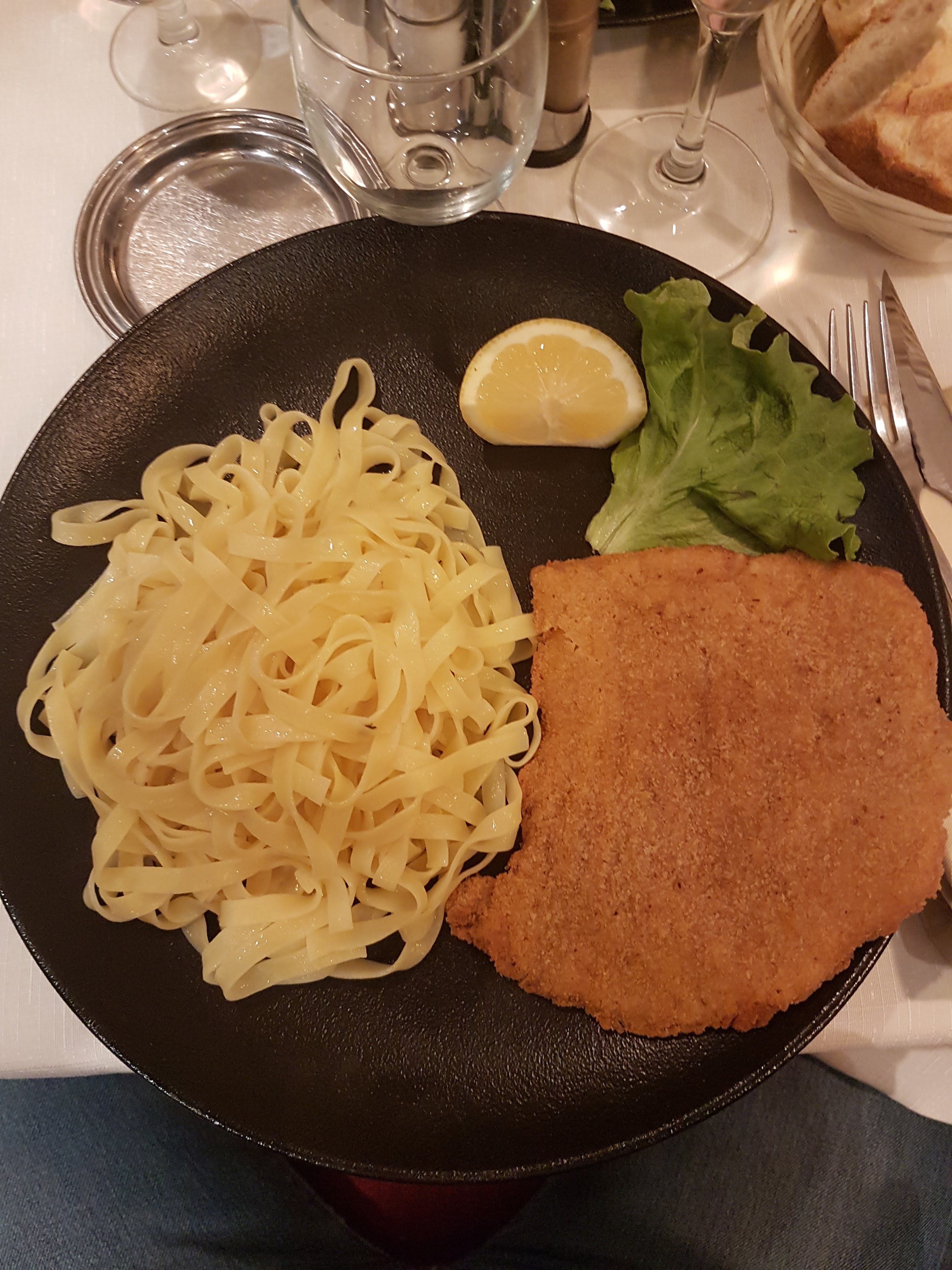 Suis je difficile ou habitué au confort ? Je voulais manger des fritti misti. J ai donc trouve ce resto pas loin. Ai je ete satisfait ? Non. Sans etre insatisfait. En tout cas les pates a la carbonara ne valaient pas les miennes et le tiramisu celui de ma femme. Suis je objectif ? Si le proseco etait tres bon