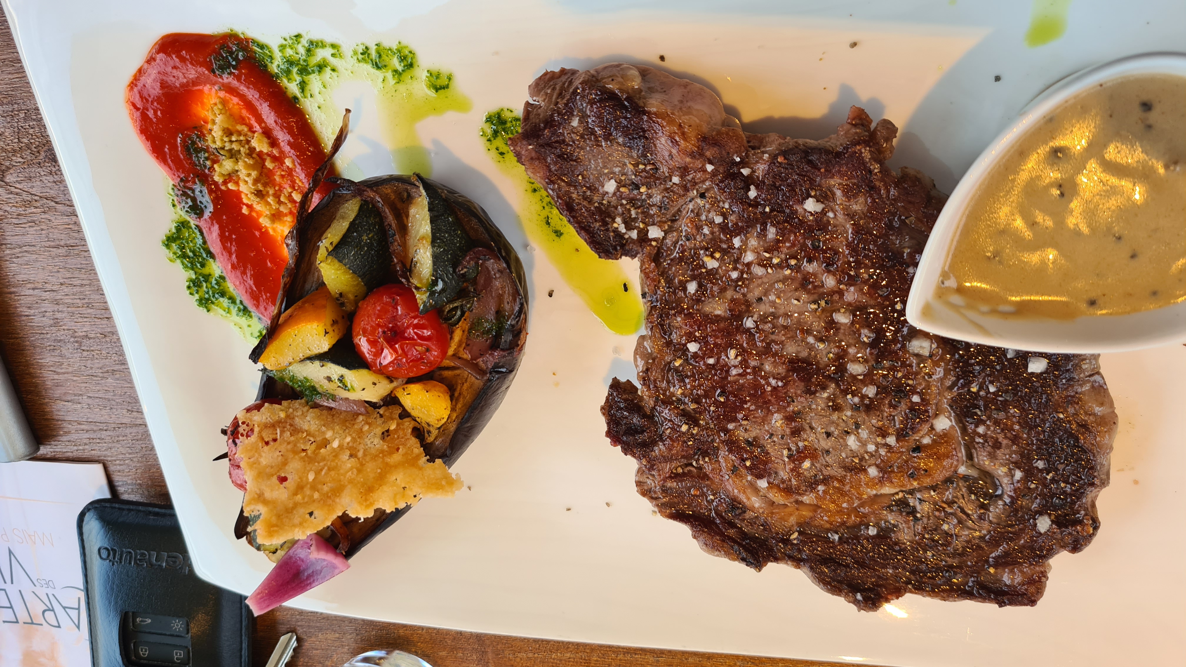 Super restaurant .Cadre magnifique Pour ma part cote de bœuf cuite à la perfection viande très tendre juteuse un délice.Le service parfait avec un accueil très chaleureux rien à dire de négatif sur ce splendide restaurant juste y revenir avec grand plaisir. Merci à toute l équipe continuer comme ça 🌞