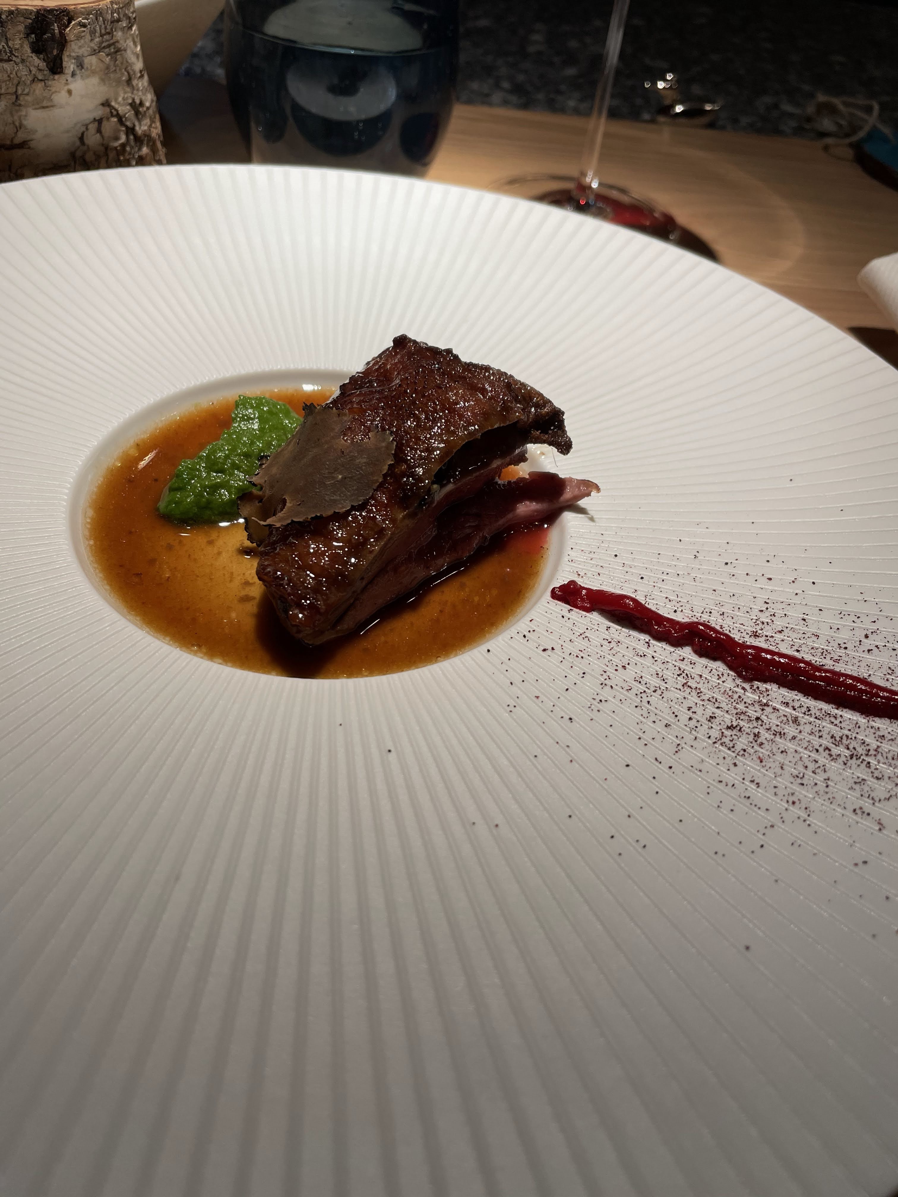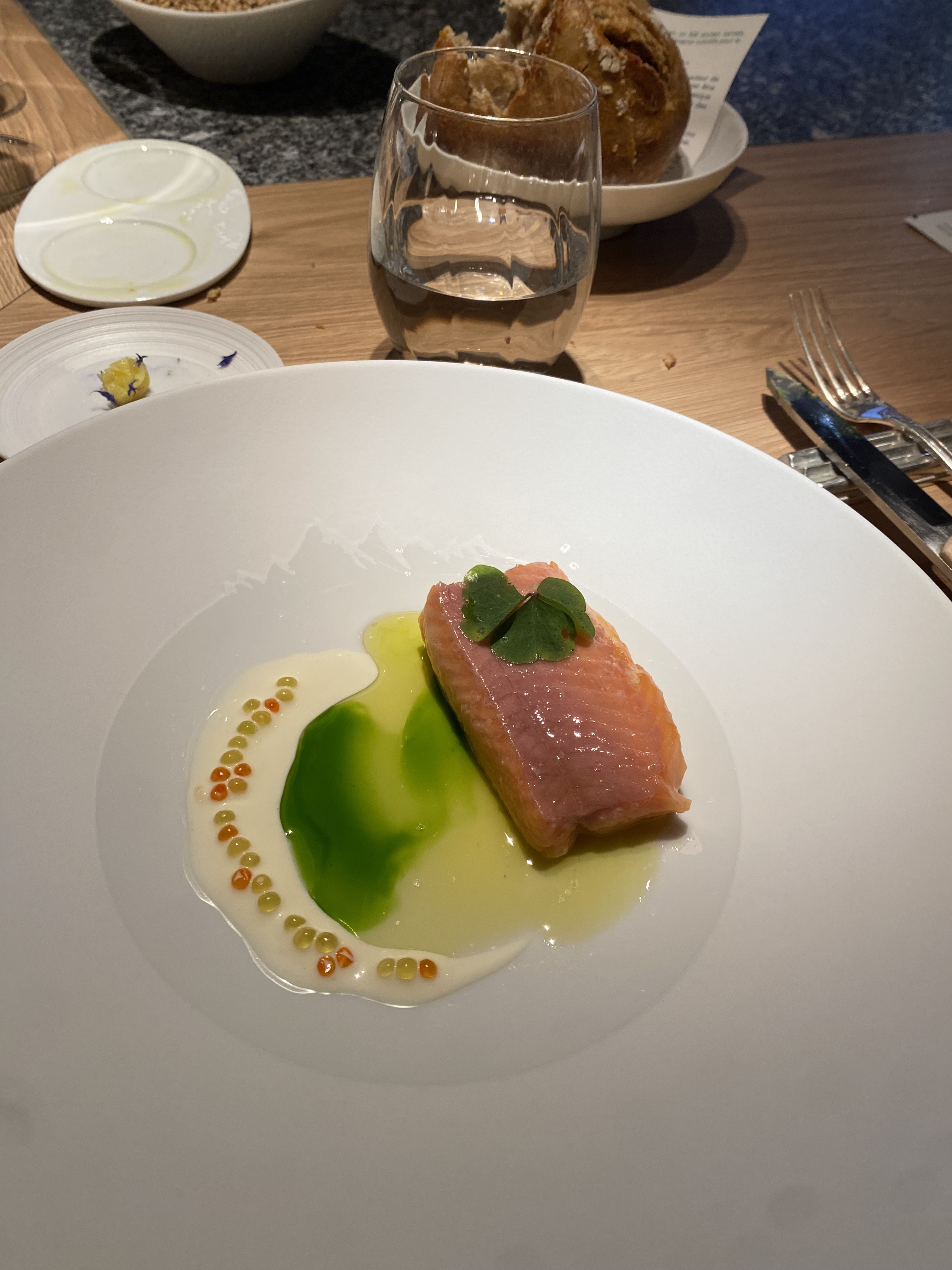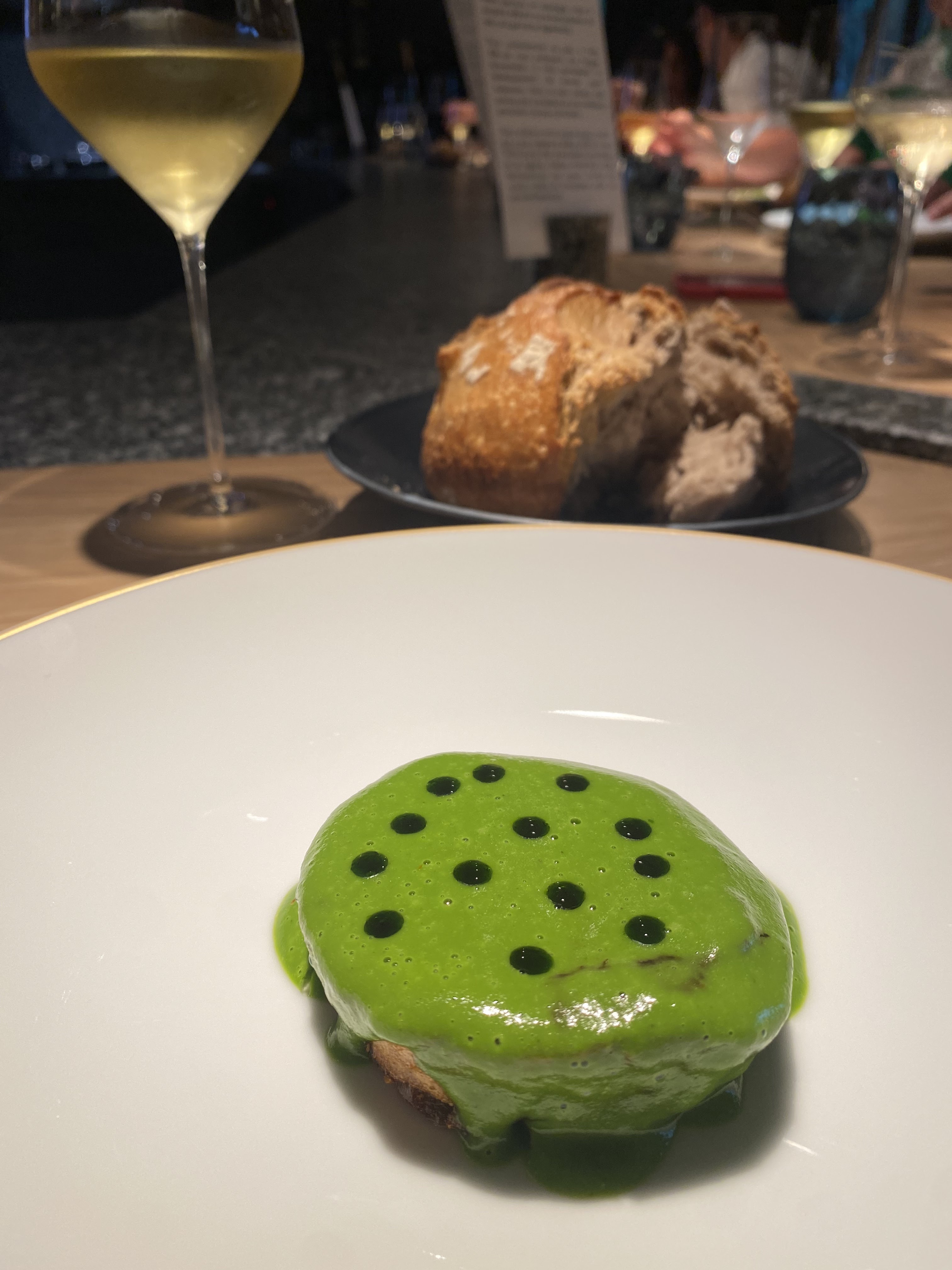 Très belle expérience, un lieu magnifique et un vrai voyage culinaire...l'alignement était dérangeant au début mais s'est vite montré confortable. Les vins étaient top. Merci