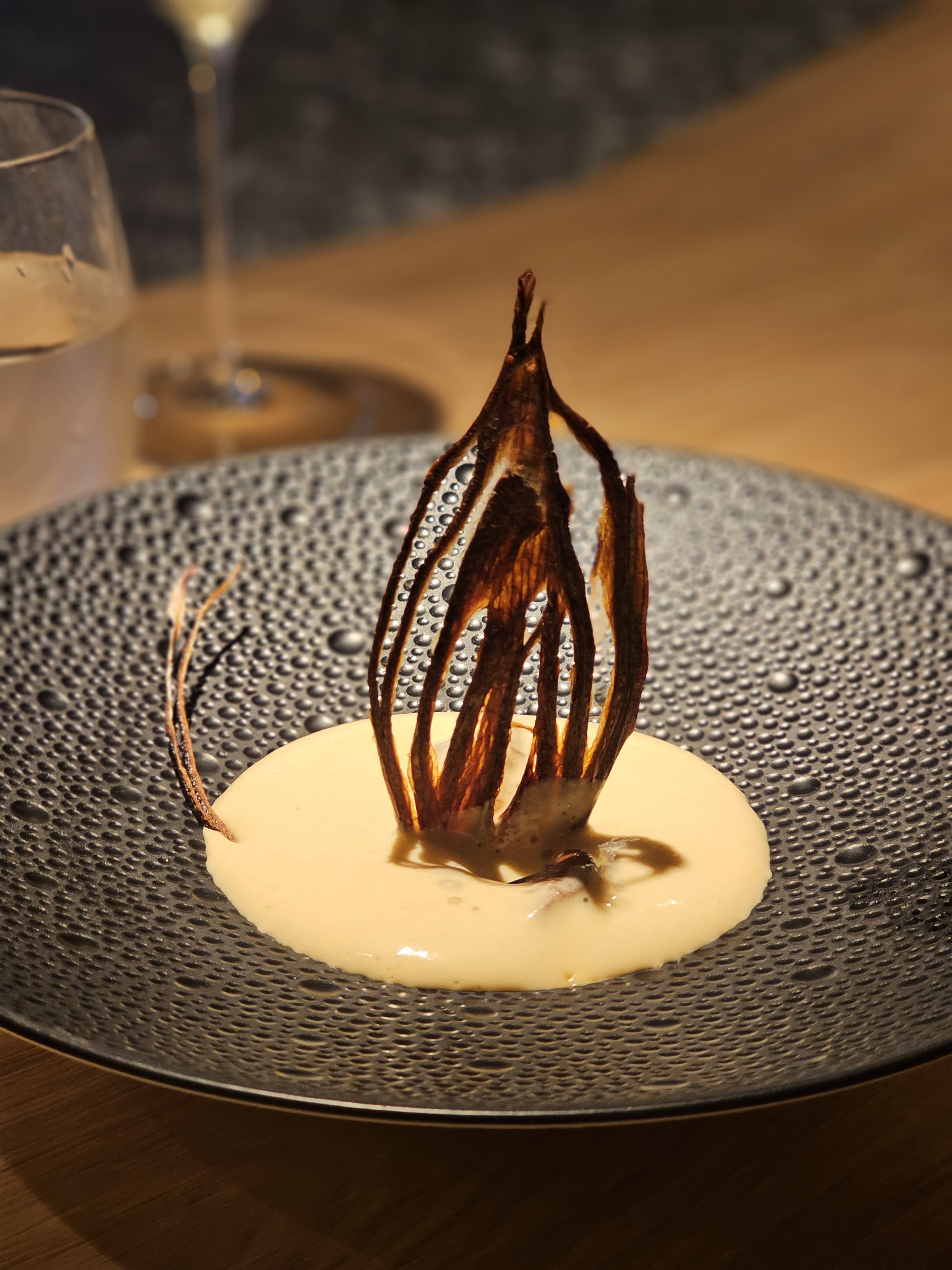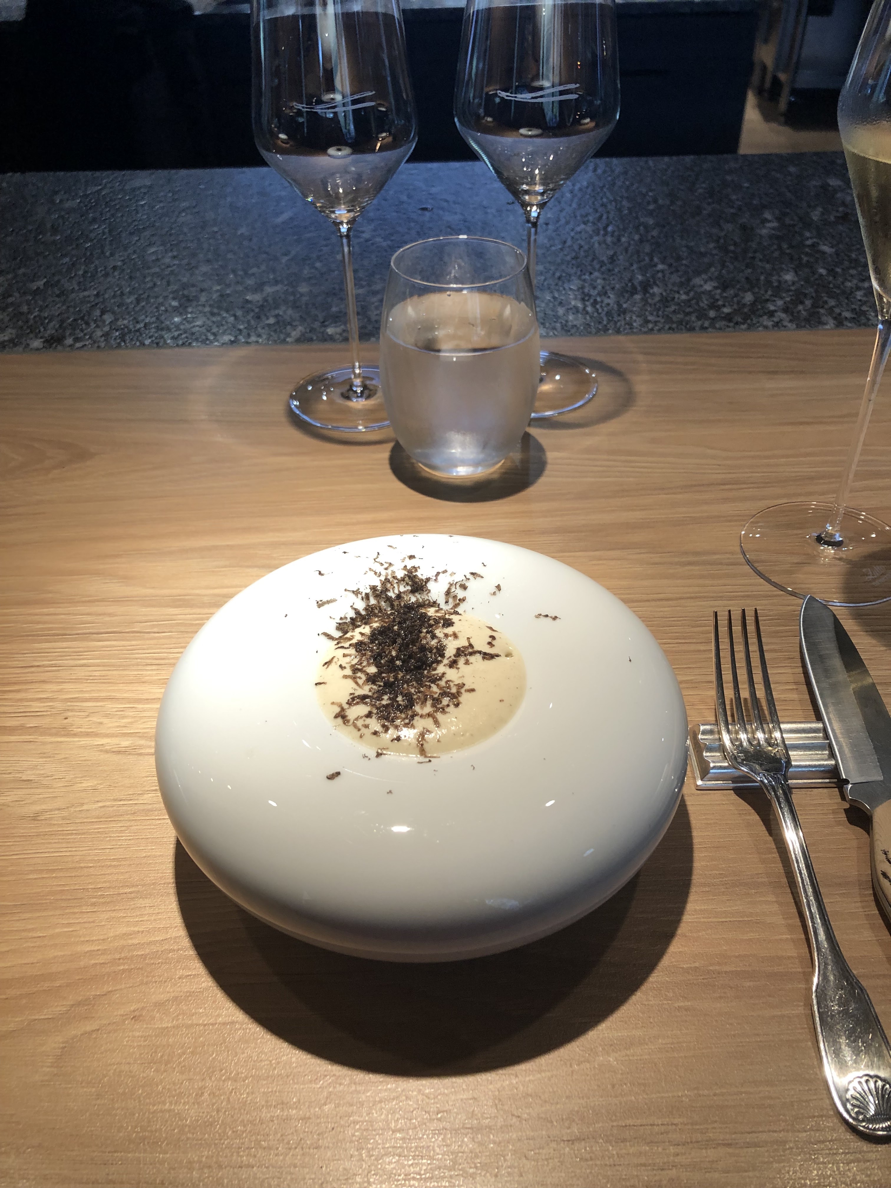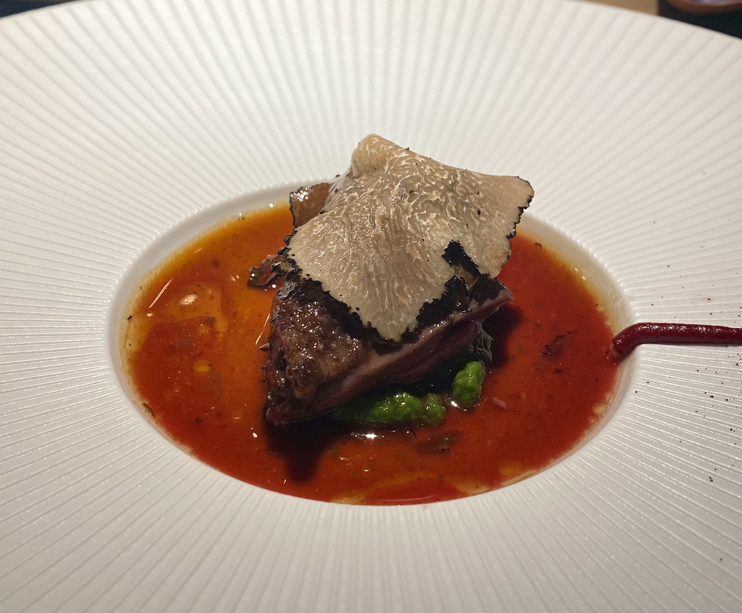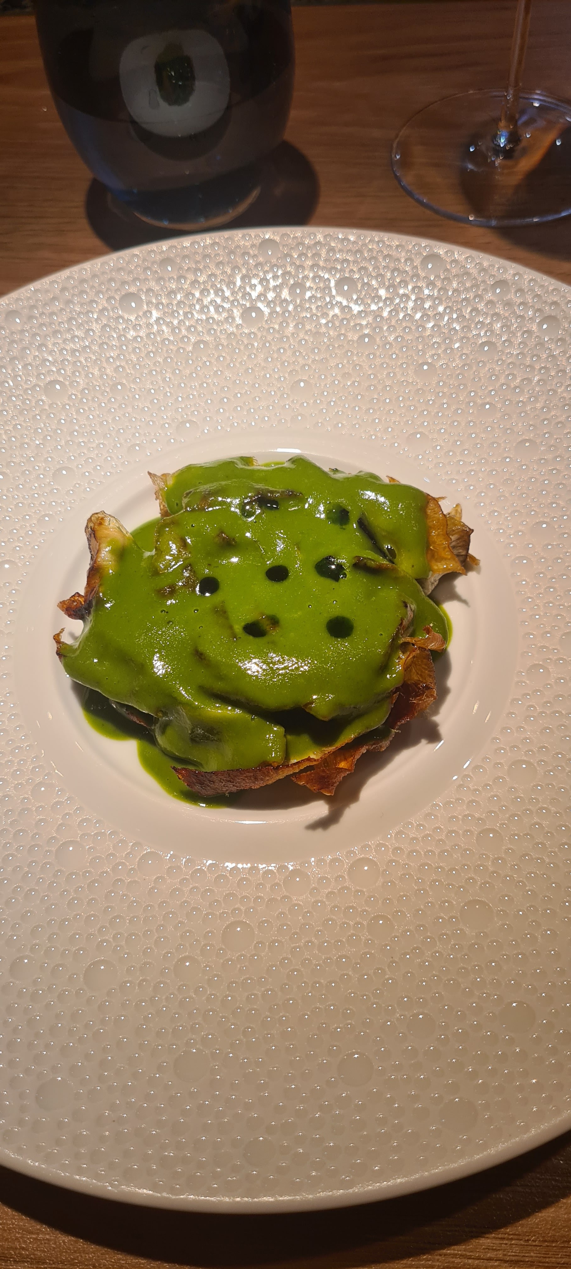 Très belle expérience, un lieu magnifique et un vrai voyage culinaire...l'alignement était dérangeant au début mais s'est vite montré confortable. Les vins étaient top. Merci