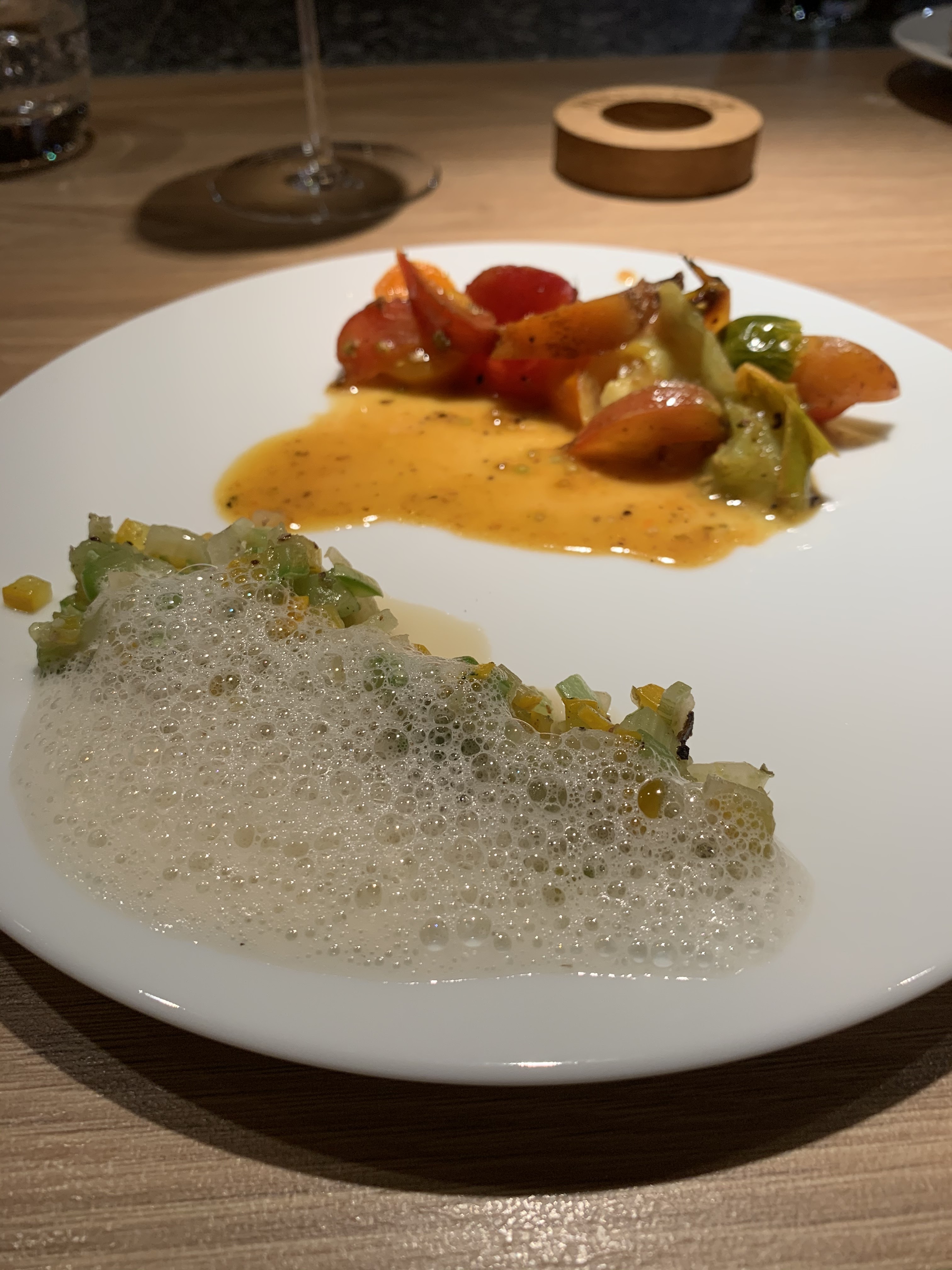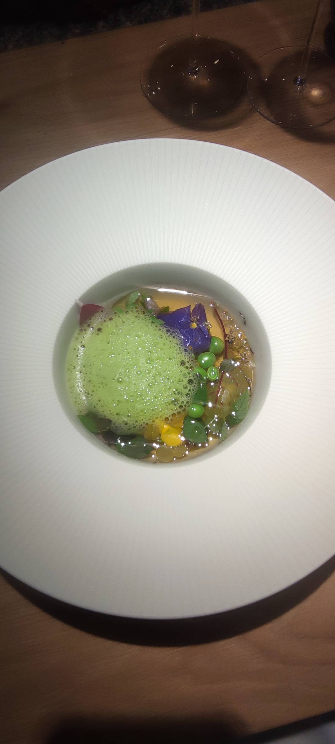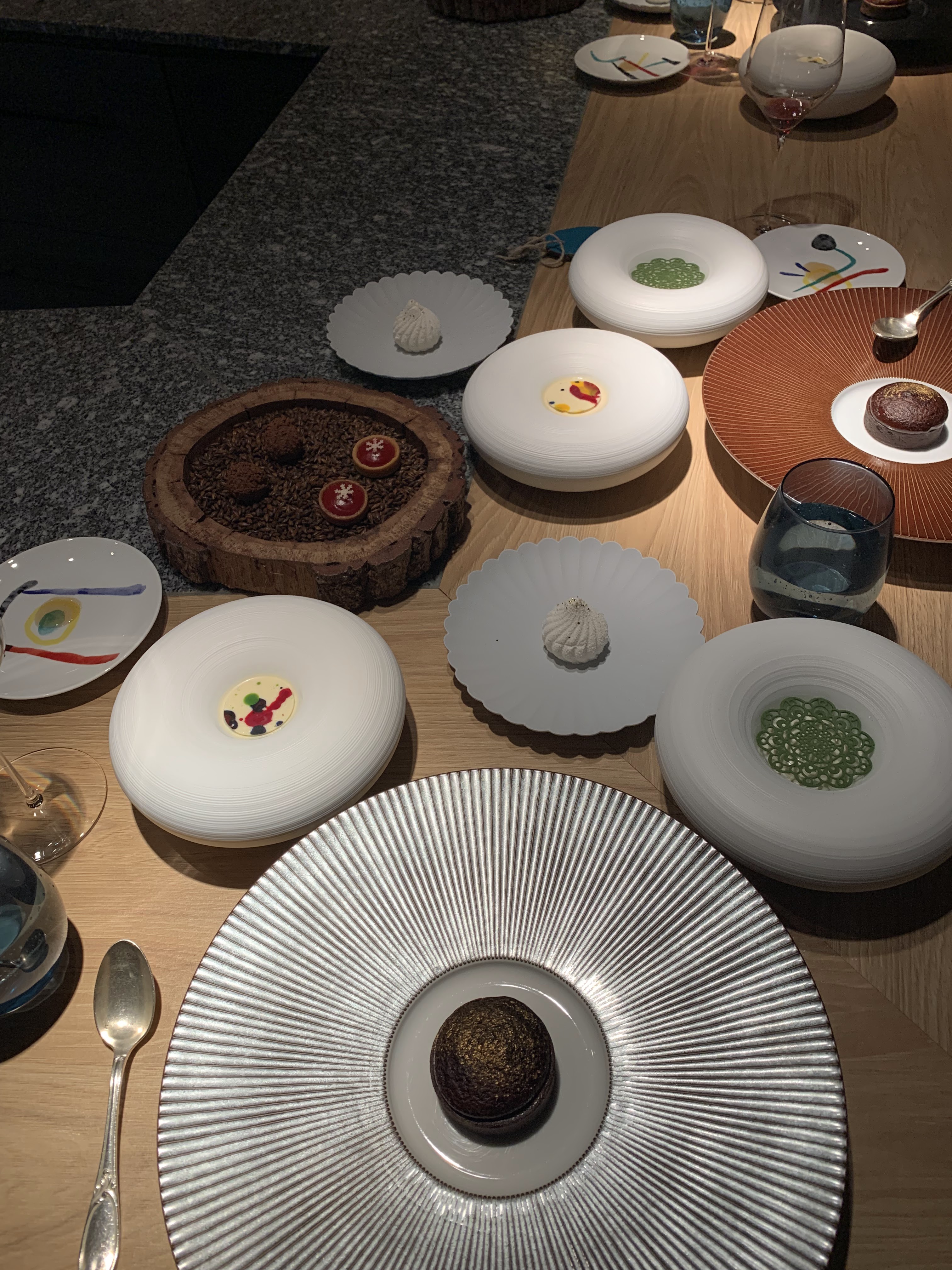 La valse des plats et des saveurs! Un spectacle de 4 h parfaitement orchestré, hors du temps où l’on est à la fois acteur et spectateur . On attendait ce moment avec beaucoup d’impatience et de curiosité … comme un enfant qui attend de découvrir son cadeau. Et…..expérience incroyable tellement elle est unique . Très admiratifs des mets qui peuvent être élaborés à partir de « simples »végétaux. Si vous voulez tester vos sens c’est ici qu’il faut venir. Cette expérience est une vraie alliance de la recherche de la technique et de l’art. Et pour parfaire le tout….des vins sublimes.